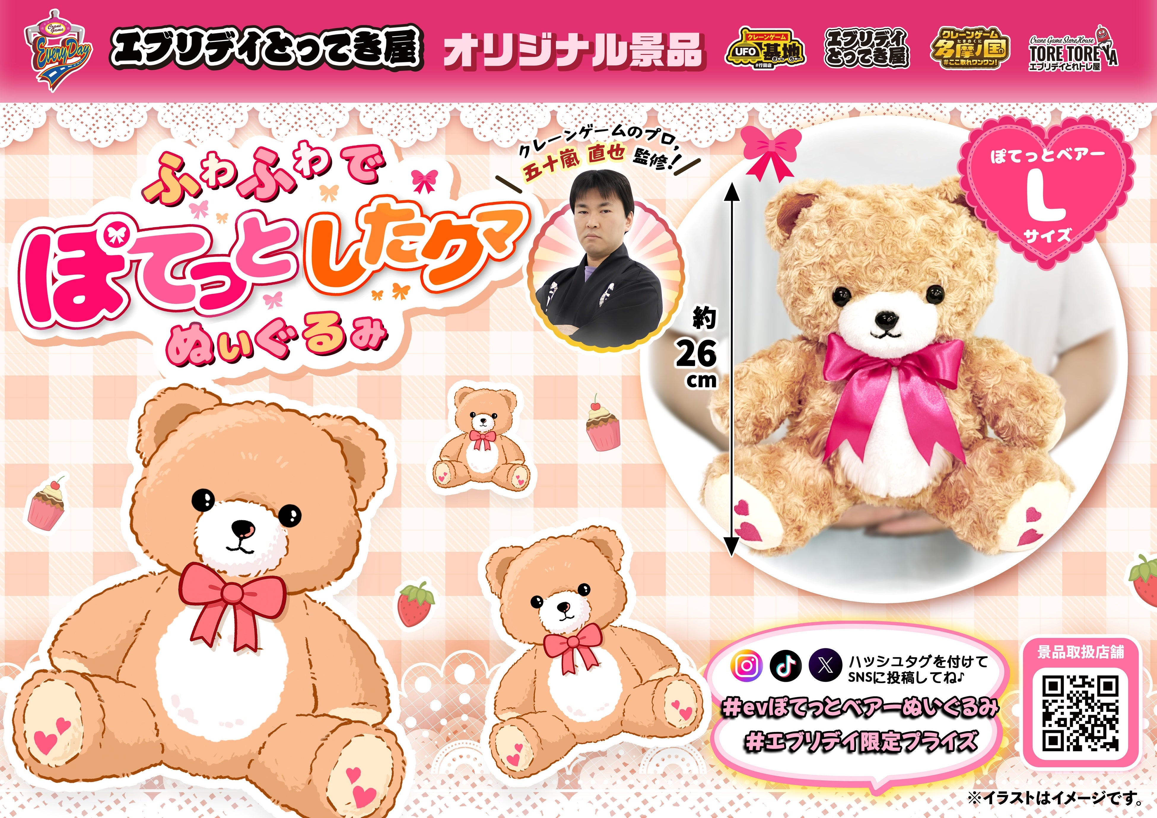ふかふかで可愛い!用途に合わせて選べる3サイズの「ぽてっとベアーぬいぐるみ」がエブリデイオリジナル景品として登場