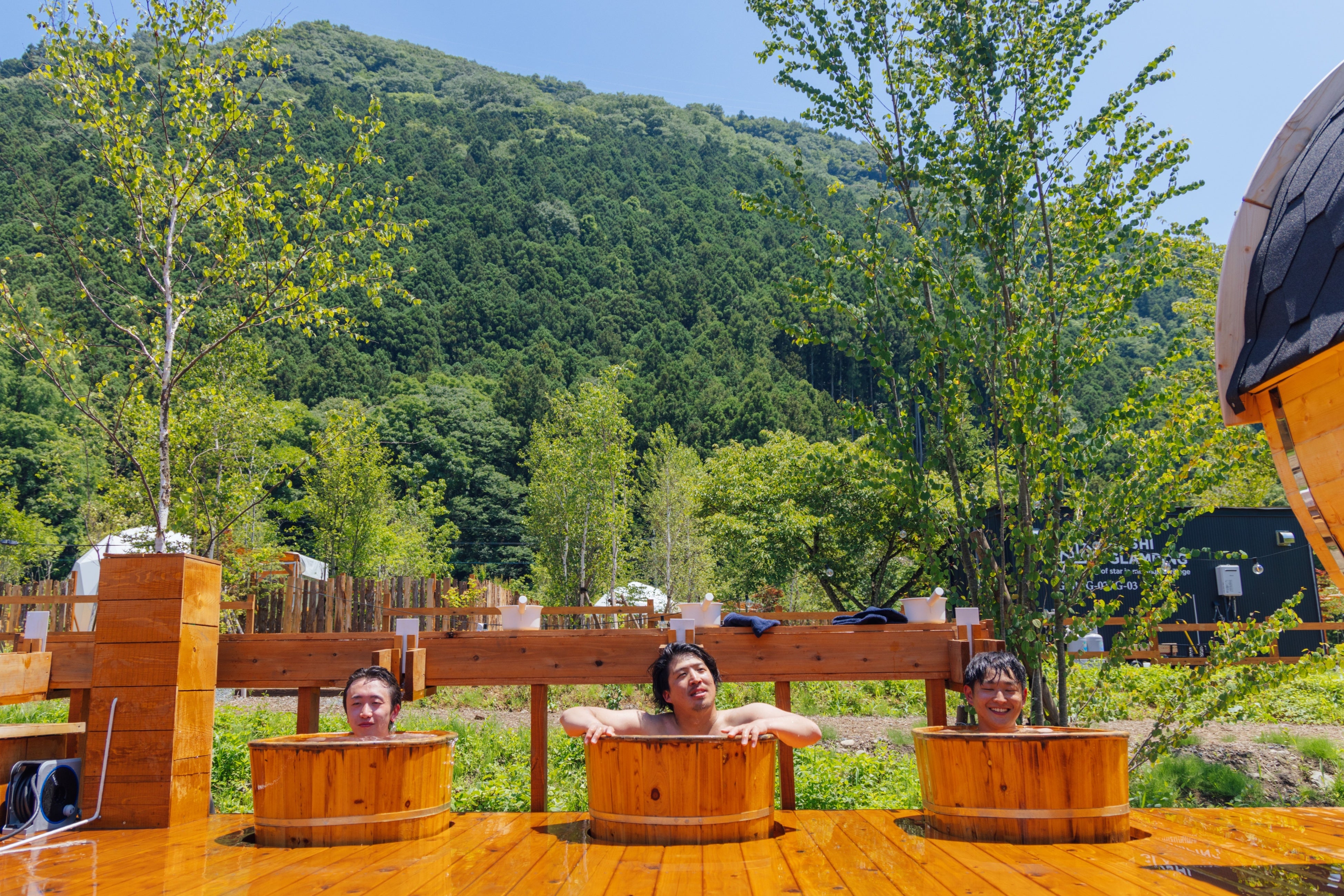 大浴場の内風呂・露天風呂には、肌にやさしい「美人の湯」とも呼ばれる天然温泉を使用。露天風呂では、満開の桜とわたらせ渓谷の雄大な自然を眺めながら、ゆったりとご入浴いただけます。また、男女それぞれに国産ヒノキの香りが漂うサウナ、天然地下水100%の水風呂、外気浴スペースを完備しており、大自然の中で “ととのう” 体験も可能です。お風呂上りには、大きな窓から山々を望む「軽食コーナー」や、寝転んでくつろげる「木もれび庵」などの広々とした休憩処で、日常を忘れてリフレッシュしていただけます。