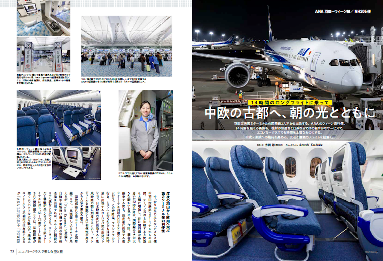 第3特集「エコノミークラスで楽しむ空と旅」では、ANA羽田〜ウィーン線とJAL成田〜グアム線を取材。エコノミークラスでの機内時間を快適に楽しむヒントを紹介します