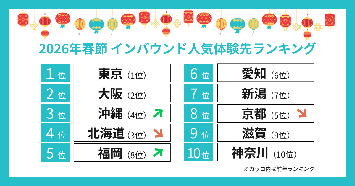 KKday、「2026年春節 インバウンド体験先ランキング」を発表。インバウンド消費は成熟段階に入り、旬の絶景や体験をめがけた『目的特化型』の地方滞在へシフト