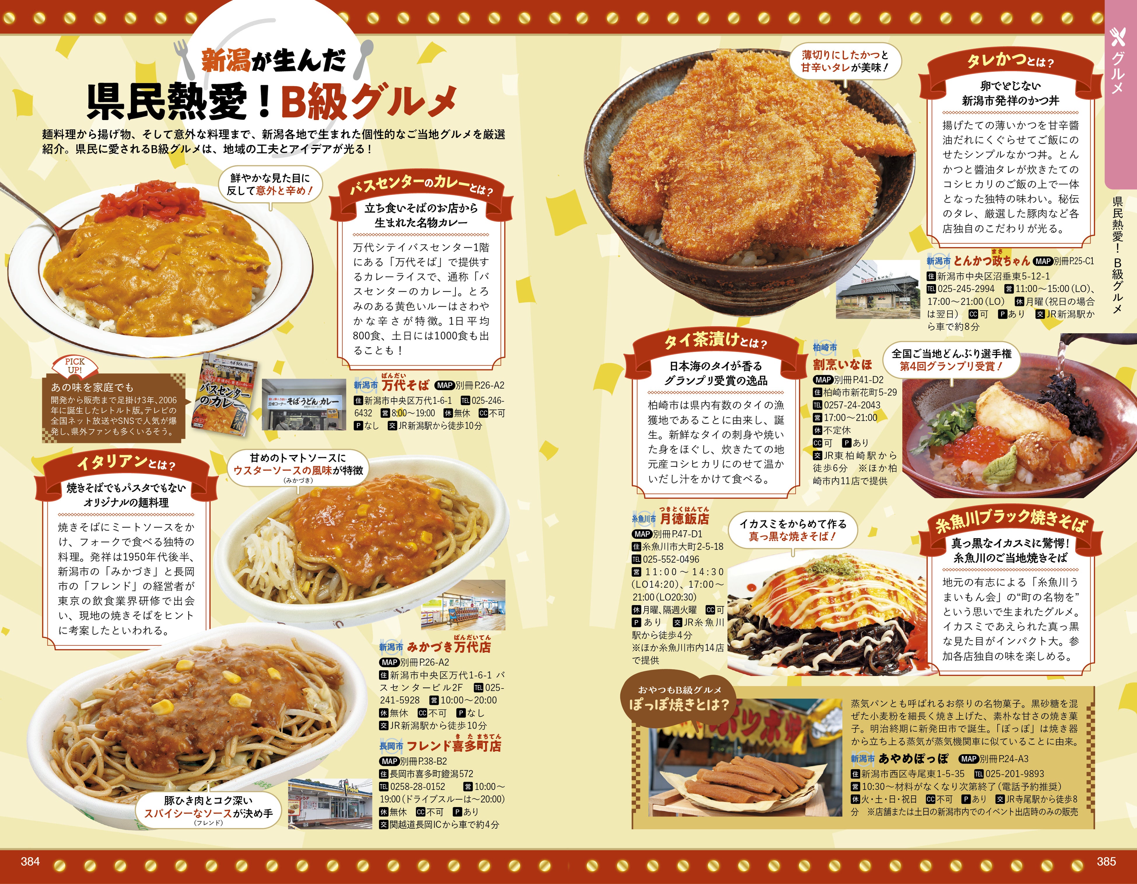 数字で読み解く 新潟早わかり/米どころは酒どころ! 新潟の日本酒/日本屈指の花火大国 新潟の花火はでっかい!/鮮度抜群! 日本海の幸/愛されおにぎり店/あなたの知らない錦鯉の世界/ここは漫画・アニメの聖地/こだわりの笹だんご ほか