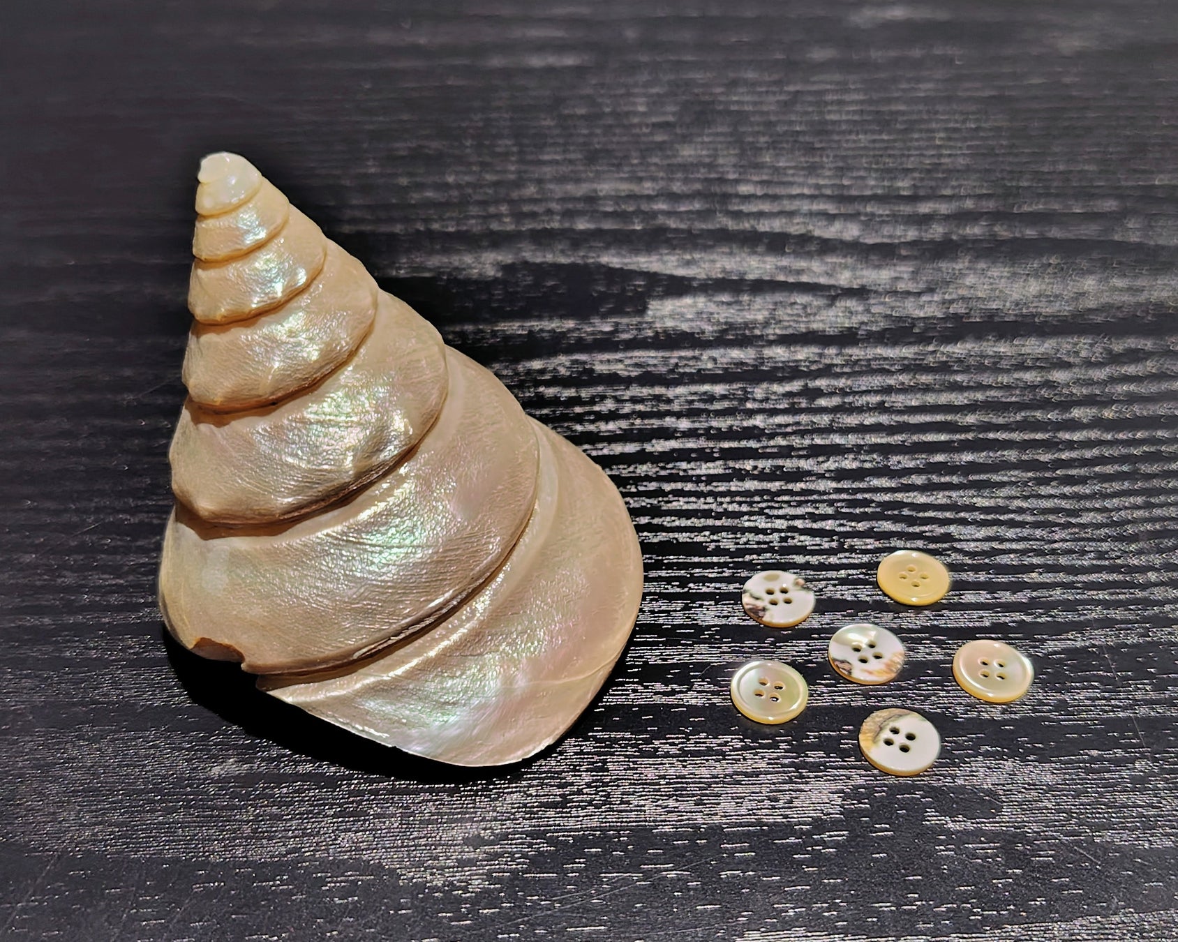 貝ボタンと原材料の貝