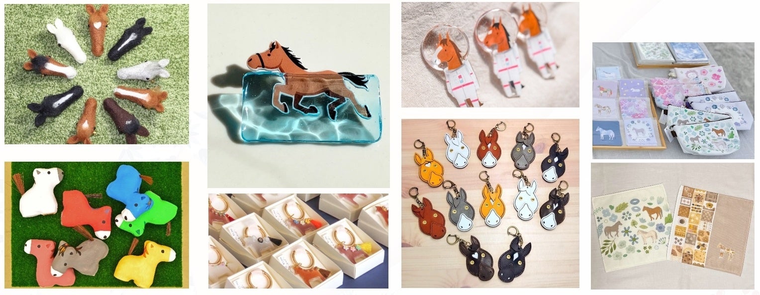 アクセサリー・雑貨・ファッション・ステーショナリーなど、かわいい馬のハンドメイド作品が並ぶ大人気のコーナー。ワークショップやオリジナルフード&スイーツの販売もあります。