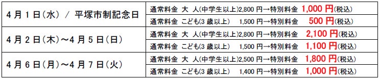 【箱根小涌園ユネッサン】4月1日(水)は平塚市制記念日!「勝手に平塚市民割!」キャンペーン実施!4月1日当日は入場料が1,000円ポッキリで超おトク!