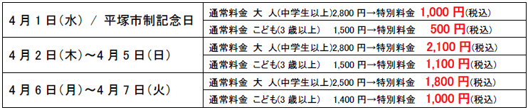 【箱根小涌園ユネッサン】4月1日(水)は平塚市制記念日!「勝手に平塚市民割!」キャンペーン実施!4月1日当日は入場料が1,000円ポッキリで超おトク!