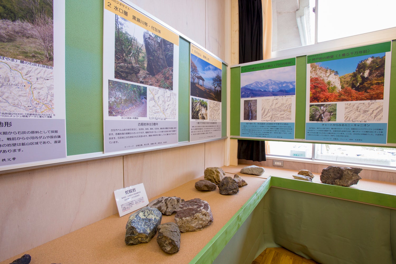 また、施設の3階に併設ある秋川流域ジオ情報室では、お客様が気軽に触れることのできる秋川の岩石などの体験も用意しており、地域の自然や地層、化石について学ぶ貴重なチャンスを提供しています。今回、展示室及び資料室をお客様に、もっと・もっと身近に楽しめるようにリニューアルされていますのでお楽しみに。