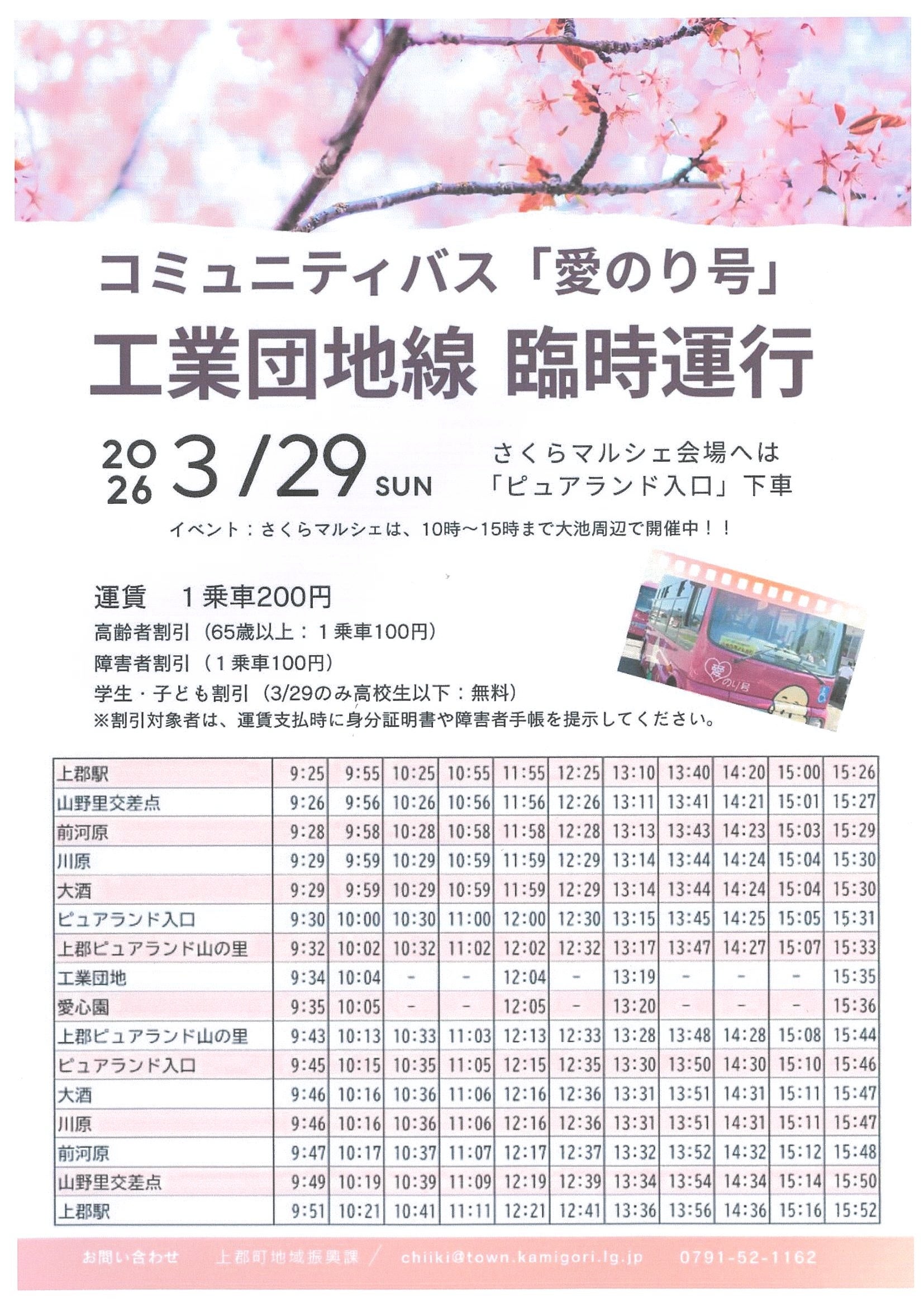 ★上郡駅から工業団地行きのコミュニティバスの臨時運行があります。