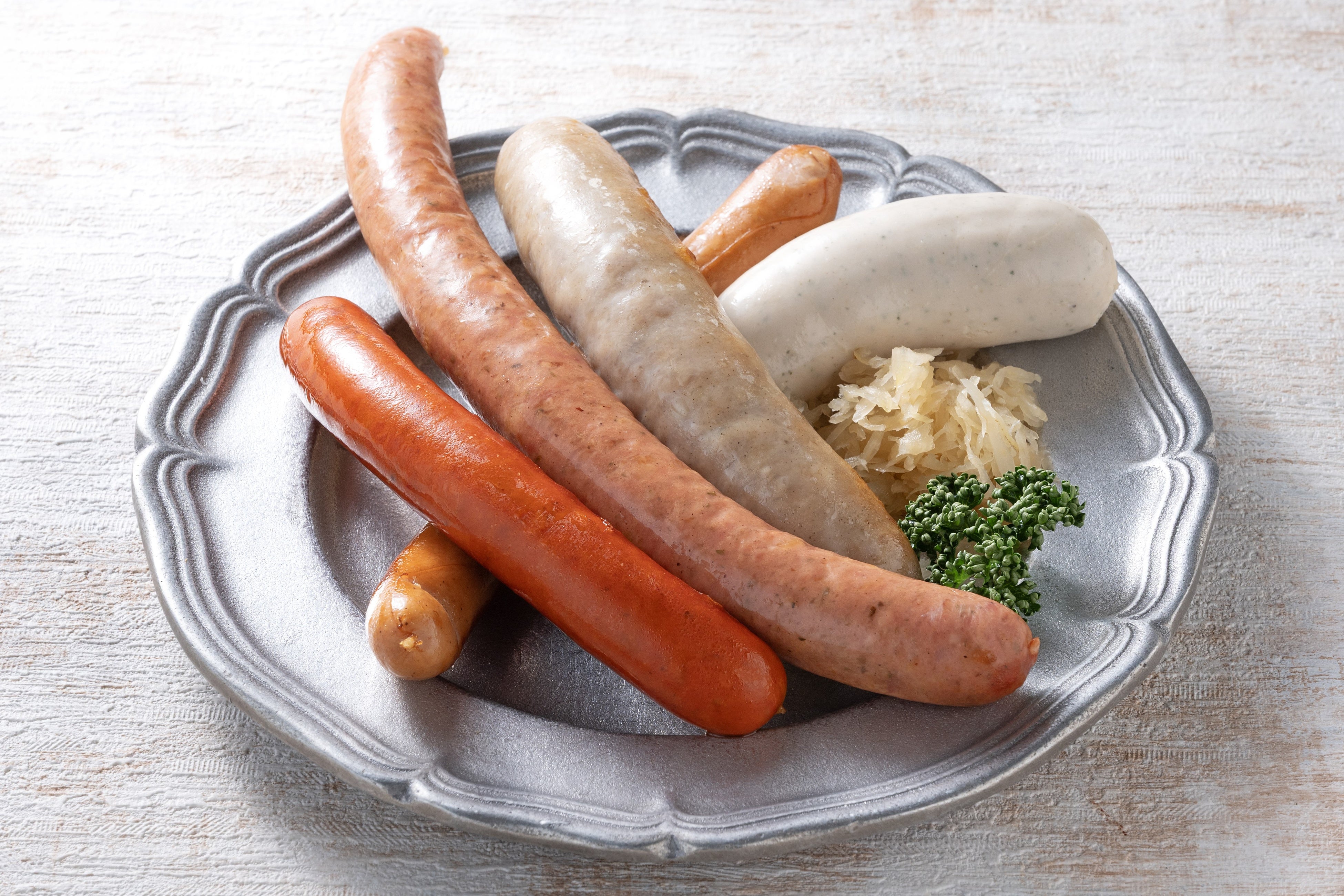 ヨーロッパリニューアル1周年を記念して、豚肉と牛肉が粗びきで入った、新食感のオリジナルソーセージ「レーゲンスブルガー」が新登場。その他にもこだわりのソーセージ4種を加えた、盛り合わせです。