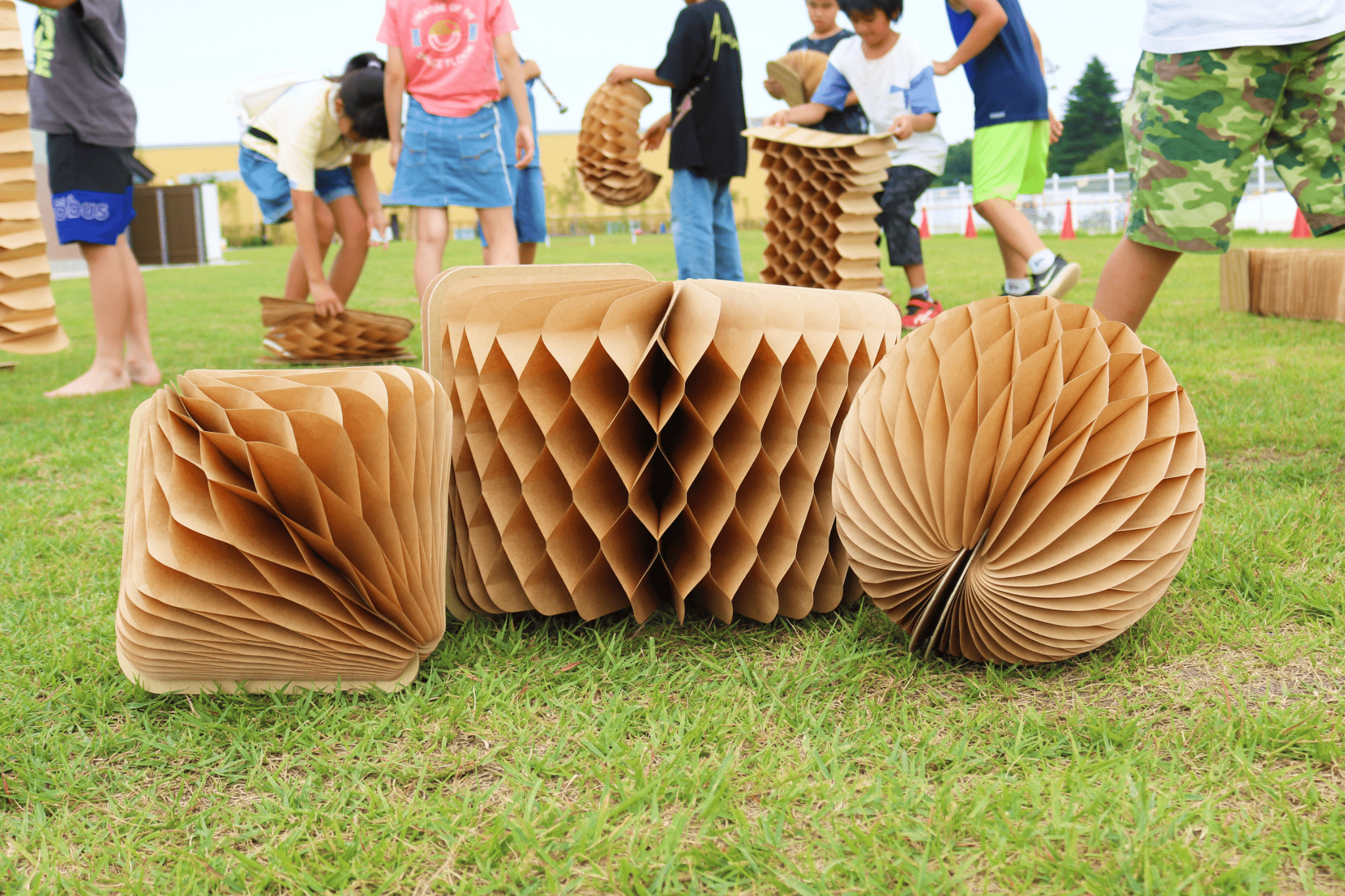 端材やダンボール、スタイロフォーム(建築模型用材料)など、さまざまな素材を組み合わせて、オリジナルの宇宙船を制作。自由な発想で造形し、世界にひとつだけの宇宙船を作ります。完成後は「水に浮かべるテスト浮航」にも挑戦できます。