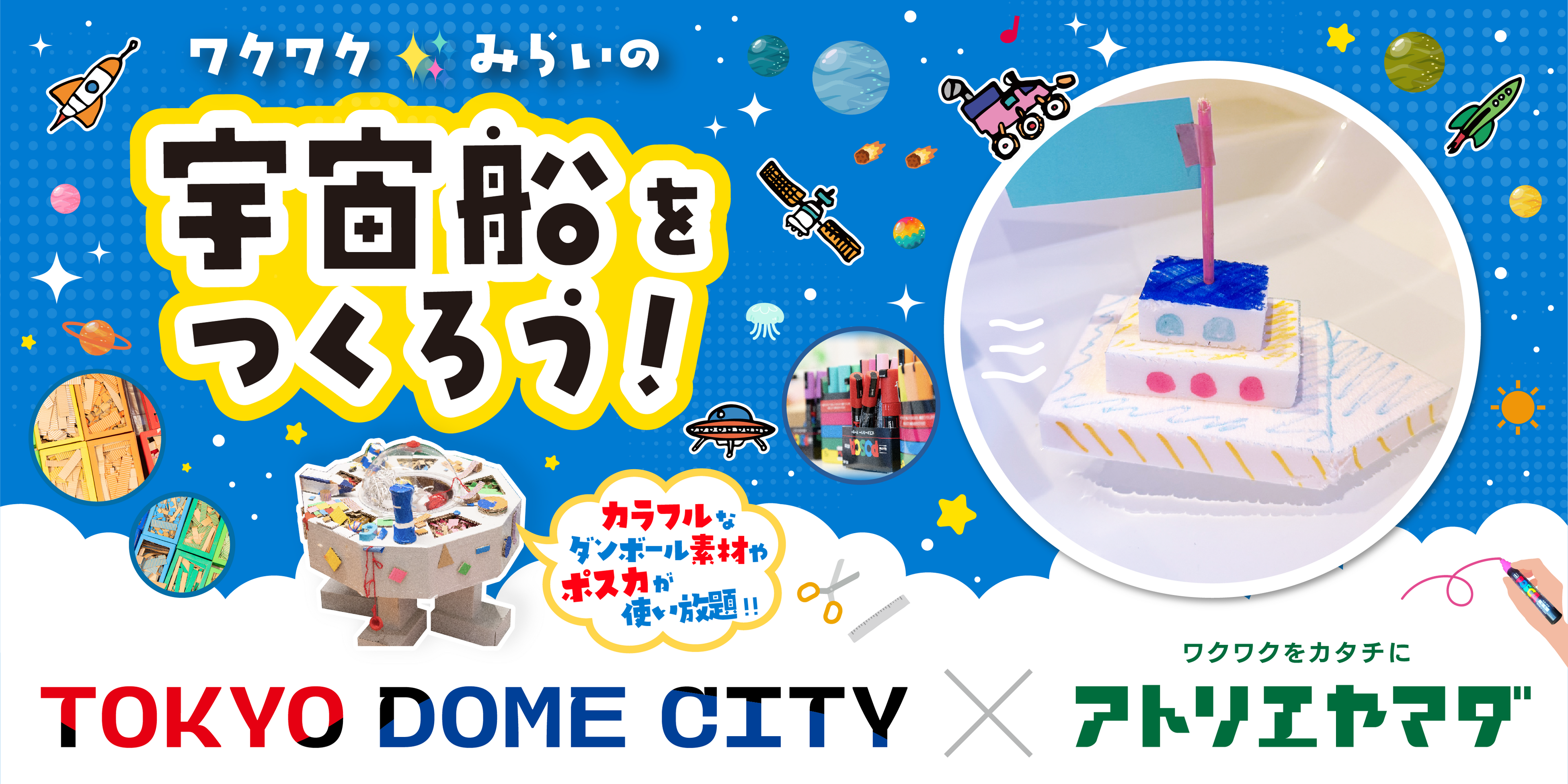 東京ドームシティとアトリエヤマダがコラボレーションし、一瞬で夢中になる体験型プログラム「MUGEN WONDER PARK PROJECT」を開催します。“自分の中のワクワクをカタチにする”ことをテーマに、端材活用・造形・動く仕組み・色づけなどの創造体験を通して、ただ作るだけでなく、考えて、試して、改良するプロセスそのものを楽しめるプログラムです。