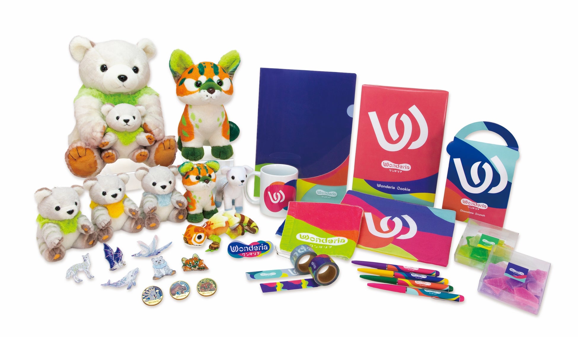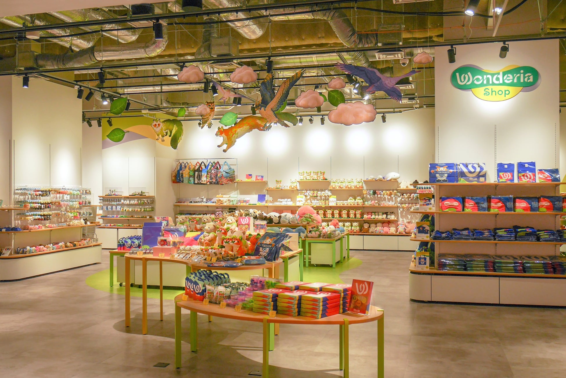 オリジナルグッズは、「ワンダリア横浜」の映像に出てきたクマやヤマネコなどの生き物のぬいぐるみや記念メダル、ロゴデザインを取り入れたカラフルでポップな日用雑貨や文房具、食品、そして横浜DeNAベイスターズデザイングッズなど、仲間みんなでお揃いにしたり、家族旅行の記念にしたりするのに最適なグッズを豊富に取り揃えています。