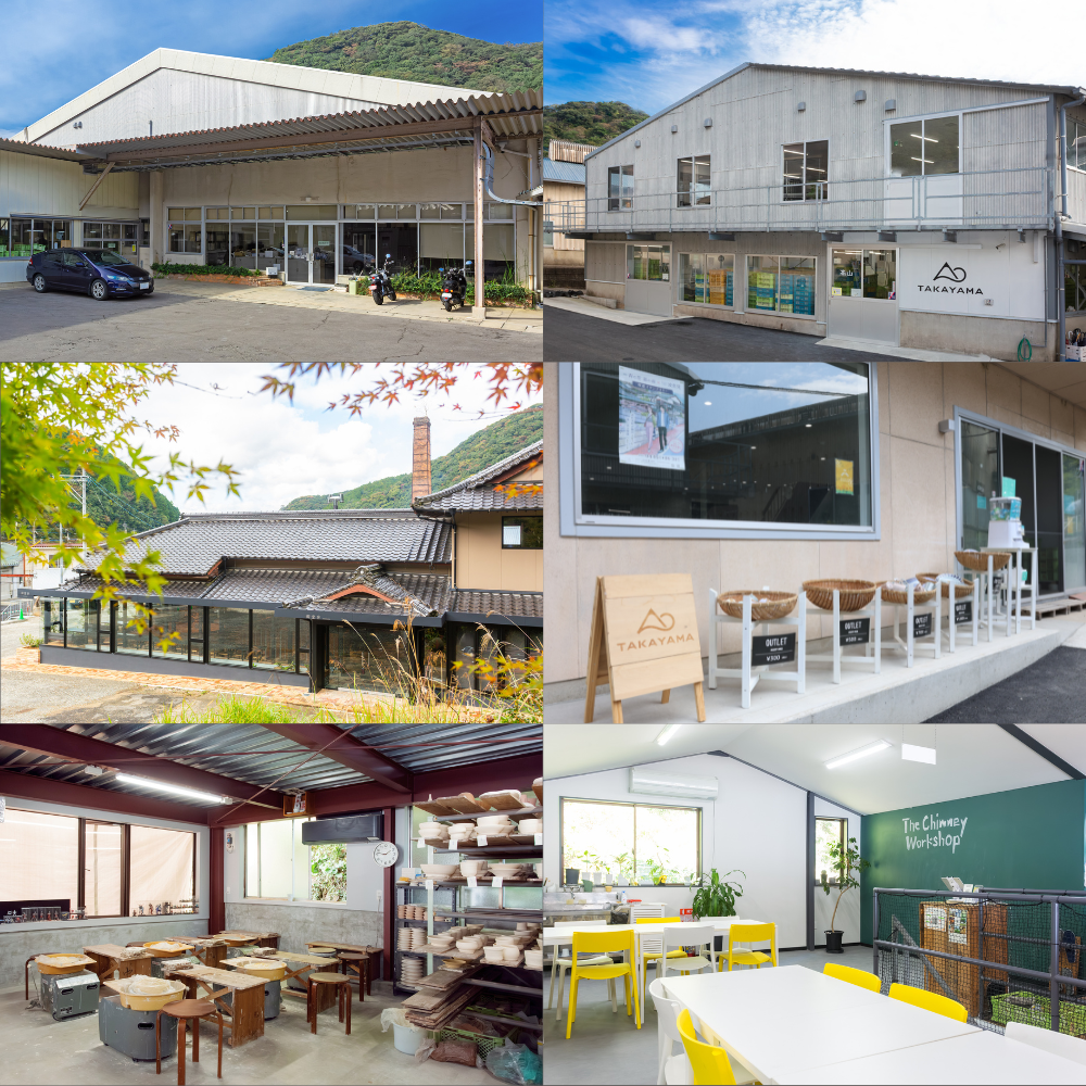 現在敷地内には、2軒の窯元・レストラン・絵付け体験/ろくろ体験の工房・やきものを販売するショップがあります。屋外には、ガスタンクアート・出土碗の発掘現場・古い煙突跡があります。