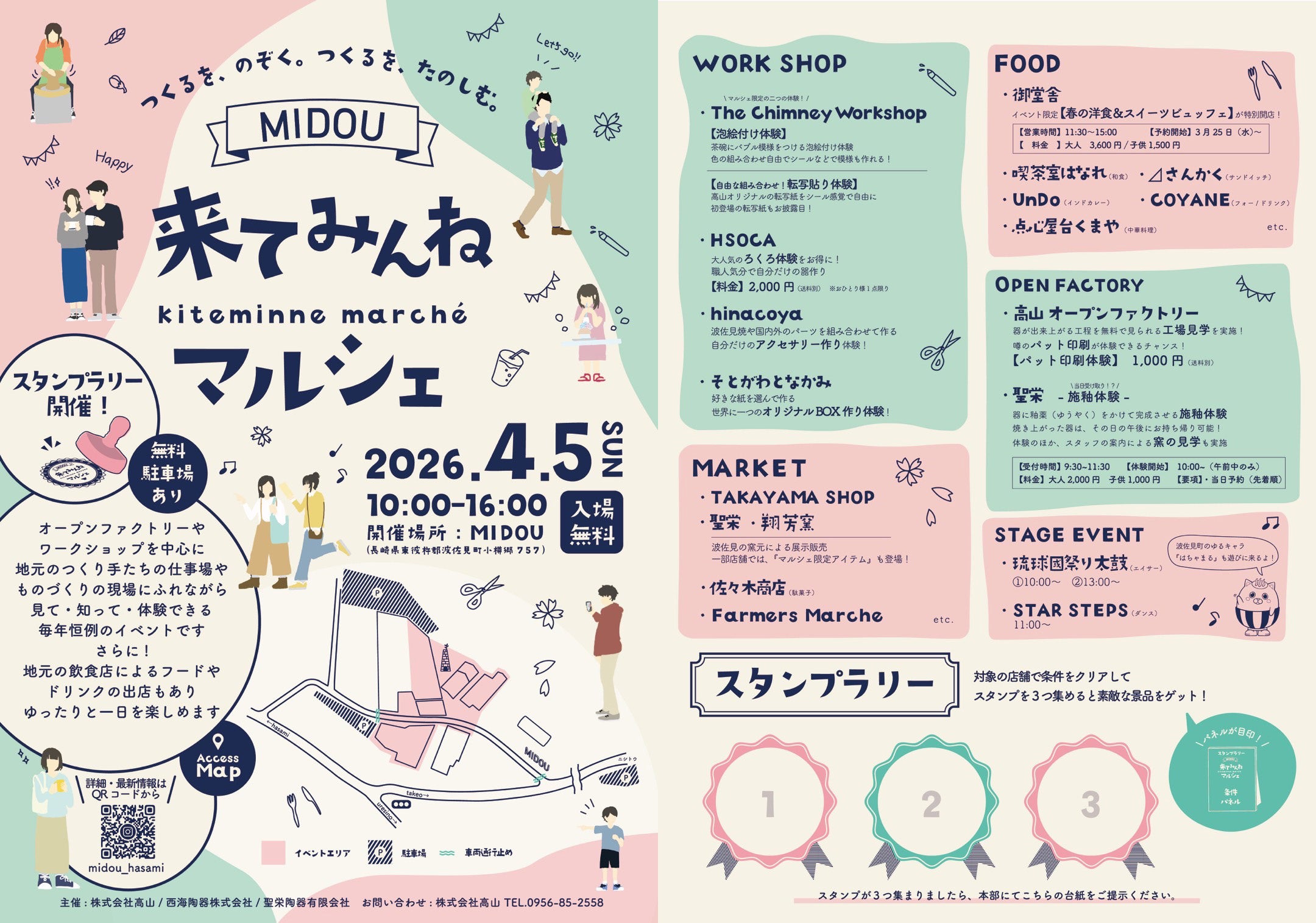 西海陶器株式会社(本社:長崎県東彼杵郡波佐見町、代表取締役:児玉賢太郎)が開発を進める新たな観光拠点「MIDOU」では、2026年4月5日(日)に「MIDOU来てみんねマルシェ」を開催します。