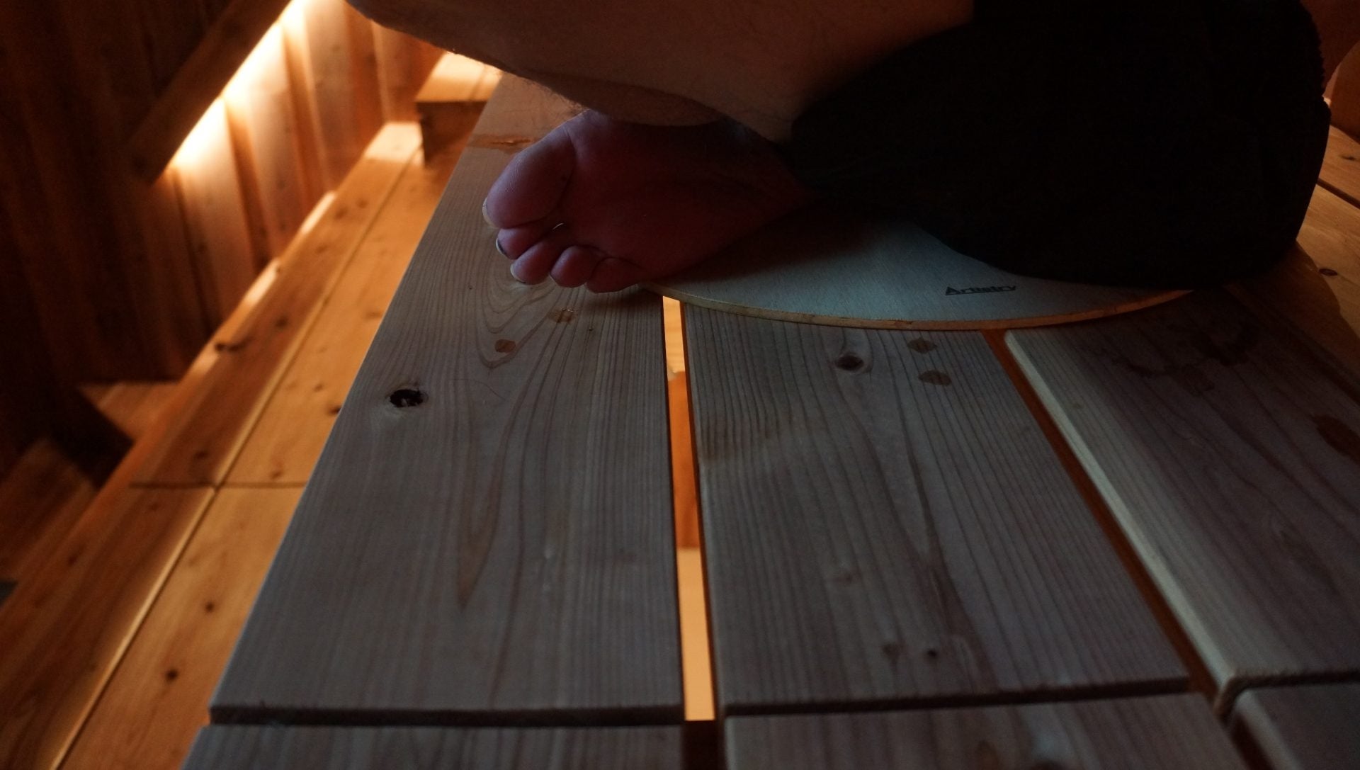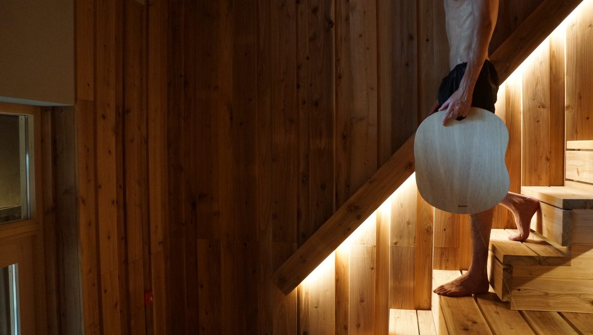 アーティストリーの木工サウナーの大西は、熱と天然素材の空間であるサウナ室で木製のサウナマットは相性が良く、日本のサウナ文化でも受け入れられると考え、商品化を検討。一年以上の試作、試利用を重ねました。