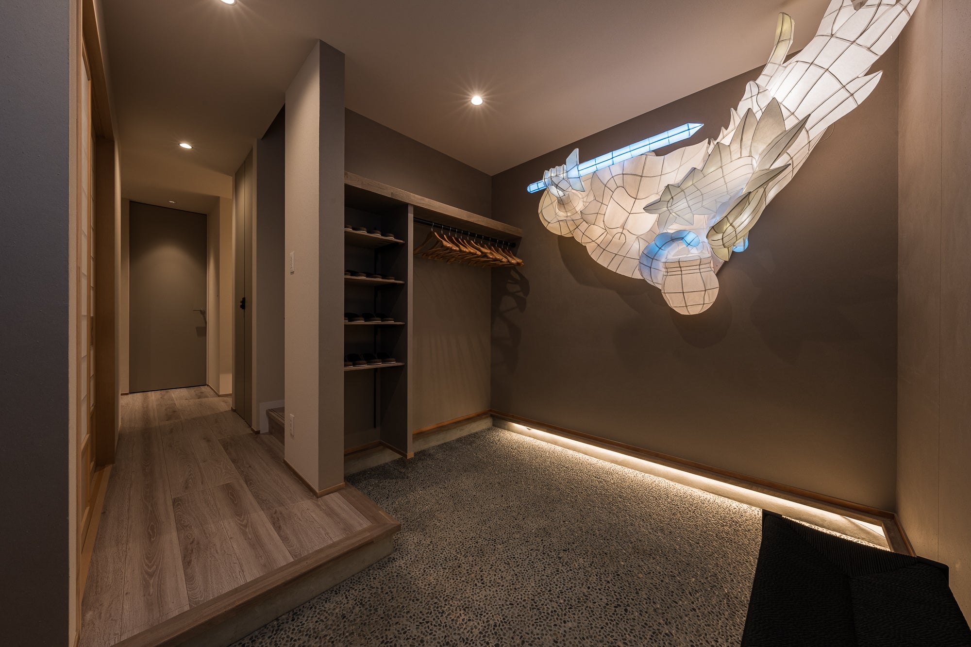 玄関には青森ねぶたをモチーフとしたアートを設置し、訪れた瞬間から青森の祭り文化を体感できる空間としています。