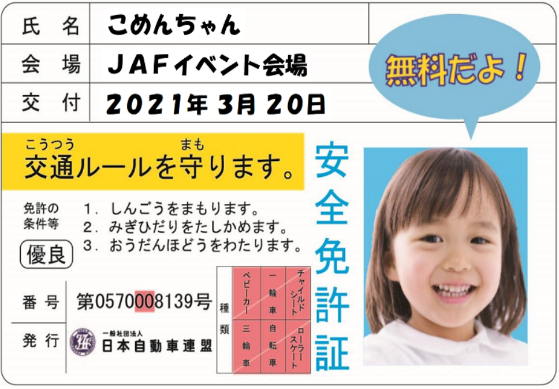・子ども安全免許証の発行(交通安全クイズに答えて、本物そっくりの免許証を作製します)