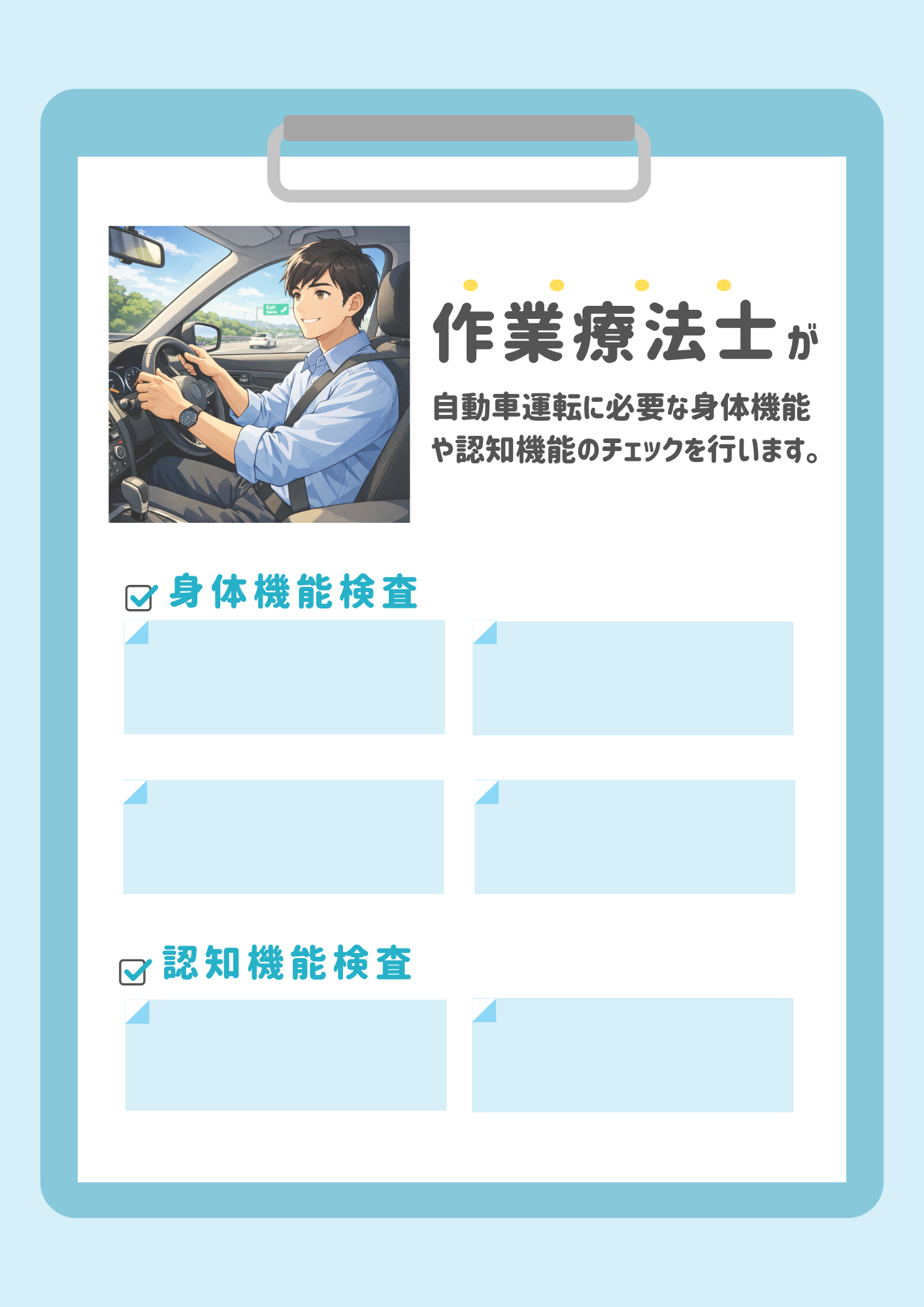 ・運転力チェック(自動車運転に必要な身体の動きや、注意力などをチェックできます)