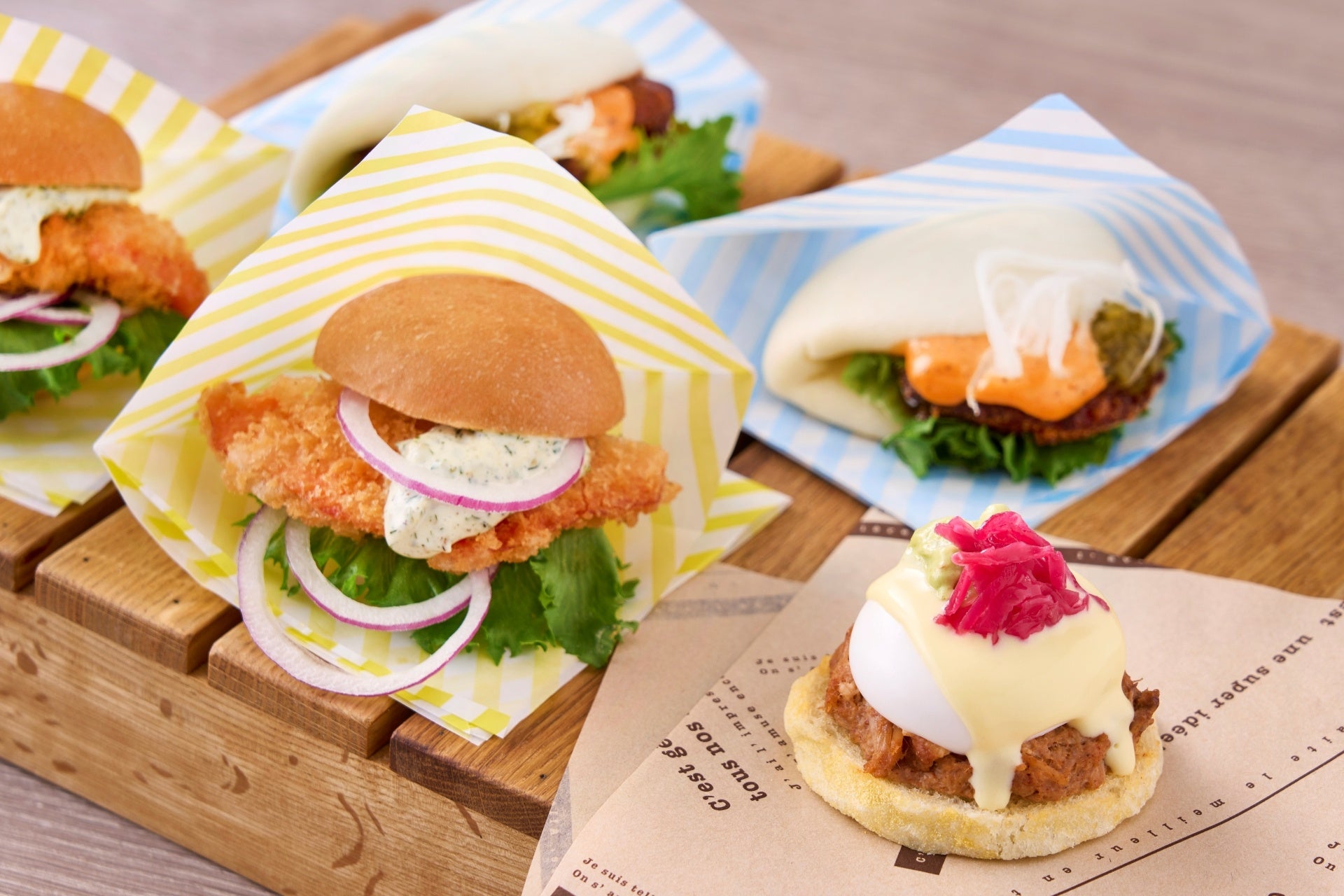 新シグネチャーメニューの「バーガー三種」(朝食)