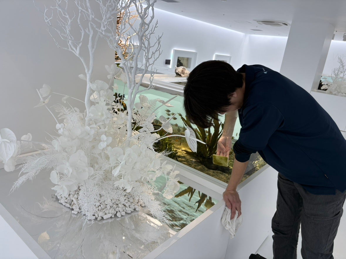 閉館後に飼育員が各水槽を掃除する様子