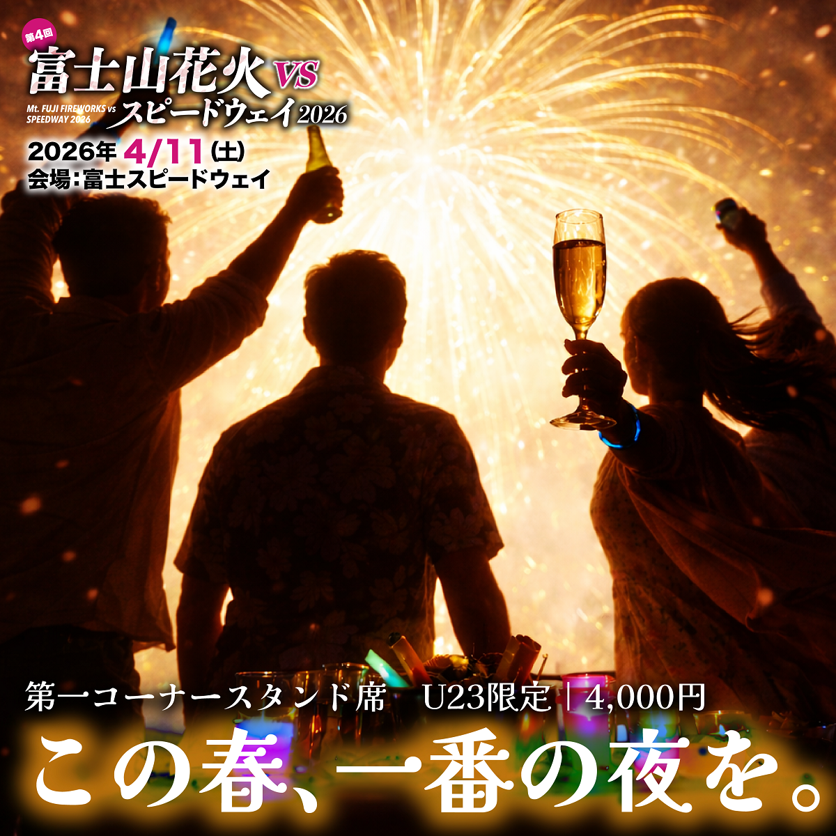 「富士山花火 vs スピードウェイ 2026」では、23歳以下限定の特別観覧エリア「U23チケット(熱響スタンド 第1コーナー)」を新たに販売開始いたします。
