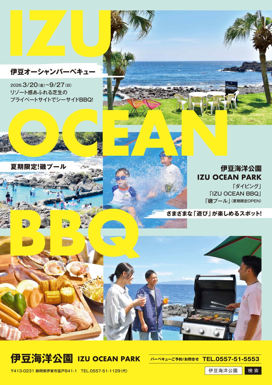 伊豆海洋公園では、太平洋を目の前に絶品バーベキューと南国リゾート気分が味わえるスポット「伊豆オーシャンバーベキュー」を、2026年3月20日 (金・祝)~9月27日(日)までオープンいたします。