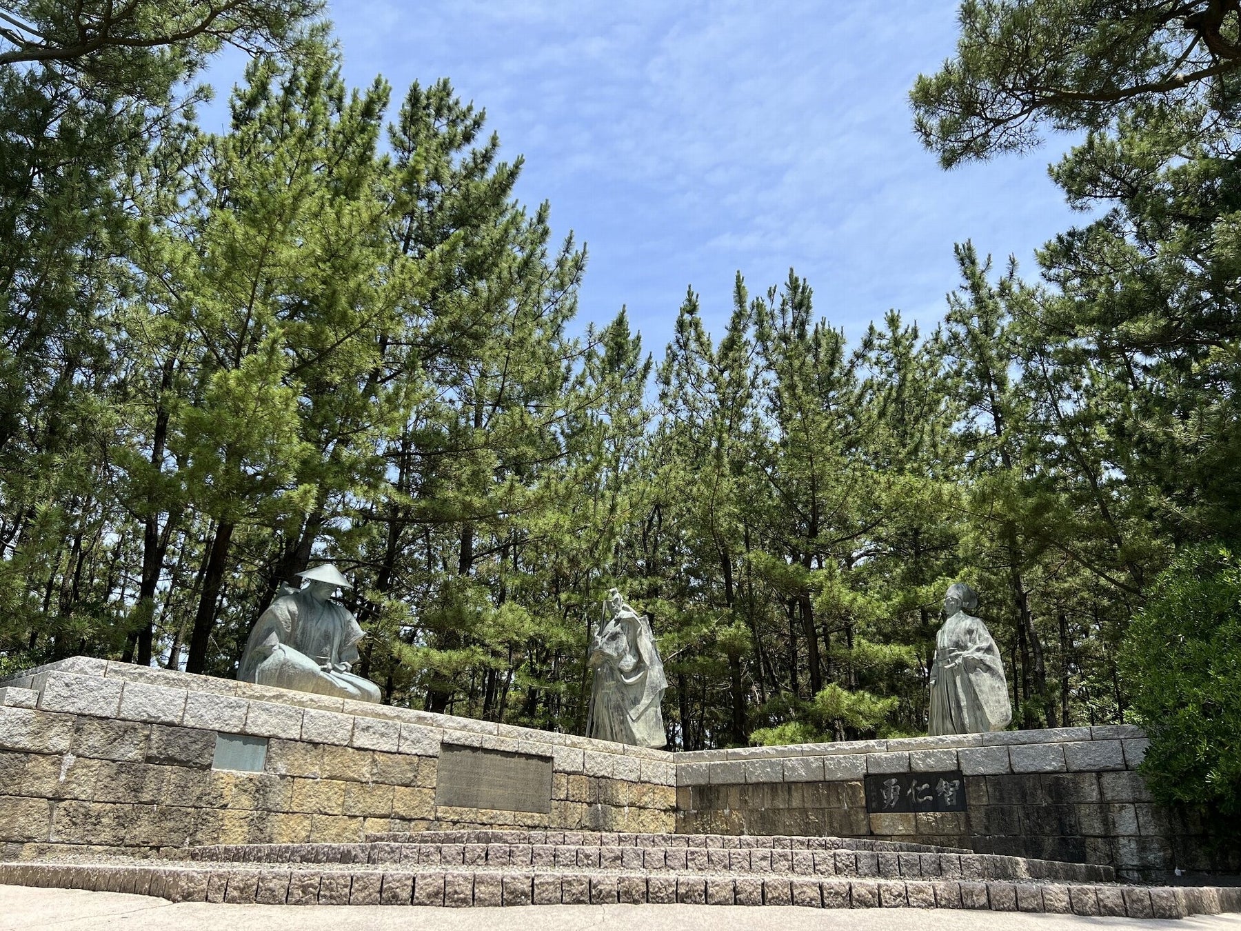 歌舞伎『勧進帳』の名場面を象った、弁慶・義経・富樫が並ぶ安宅の関の三像