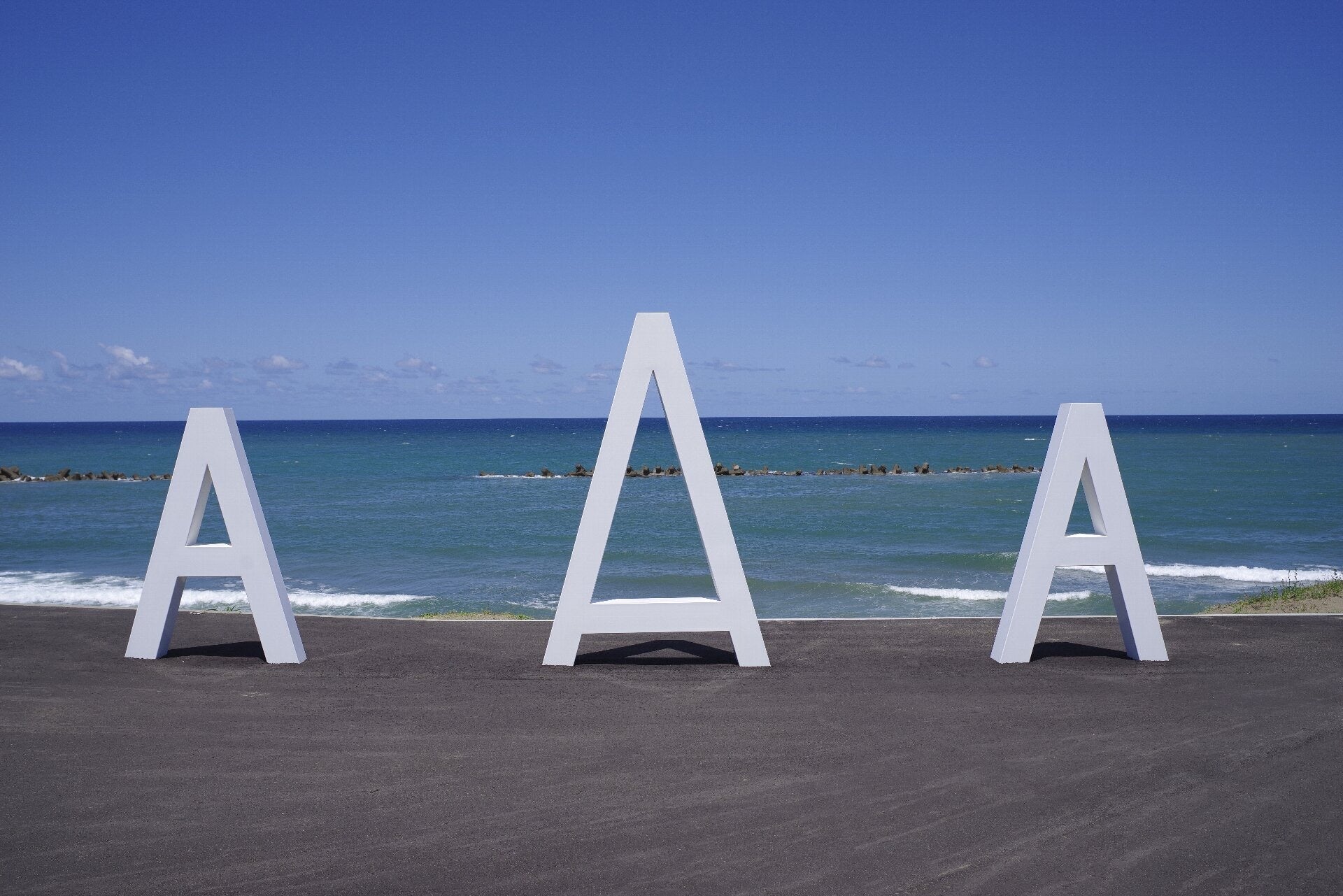 海をバックにした「A」のフォトスポット