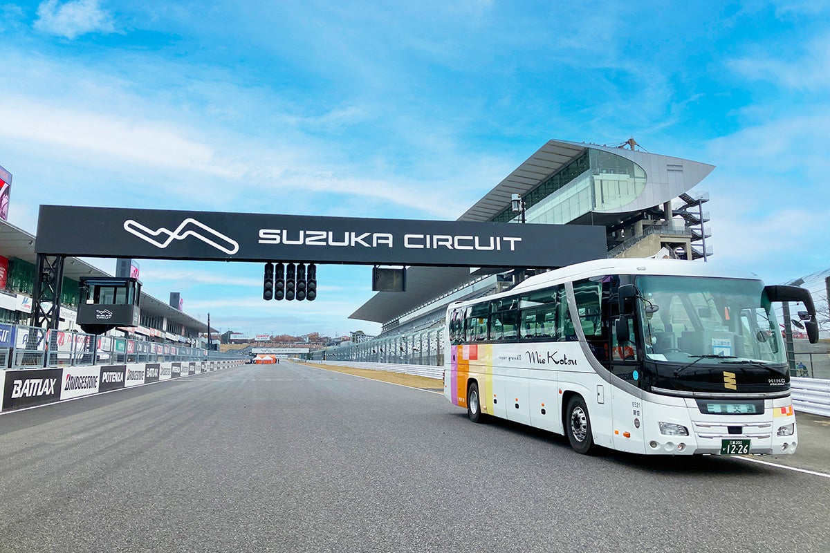 大型バスに乗ってレーシングコースを1周し、コースの高低差やコーナーの特徴を体感いただけます。