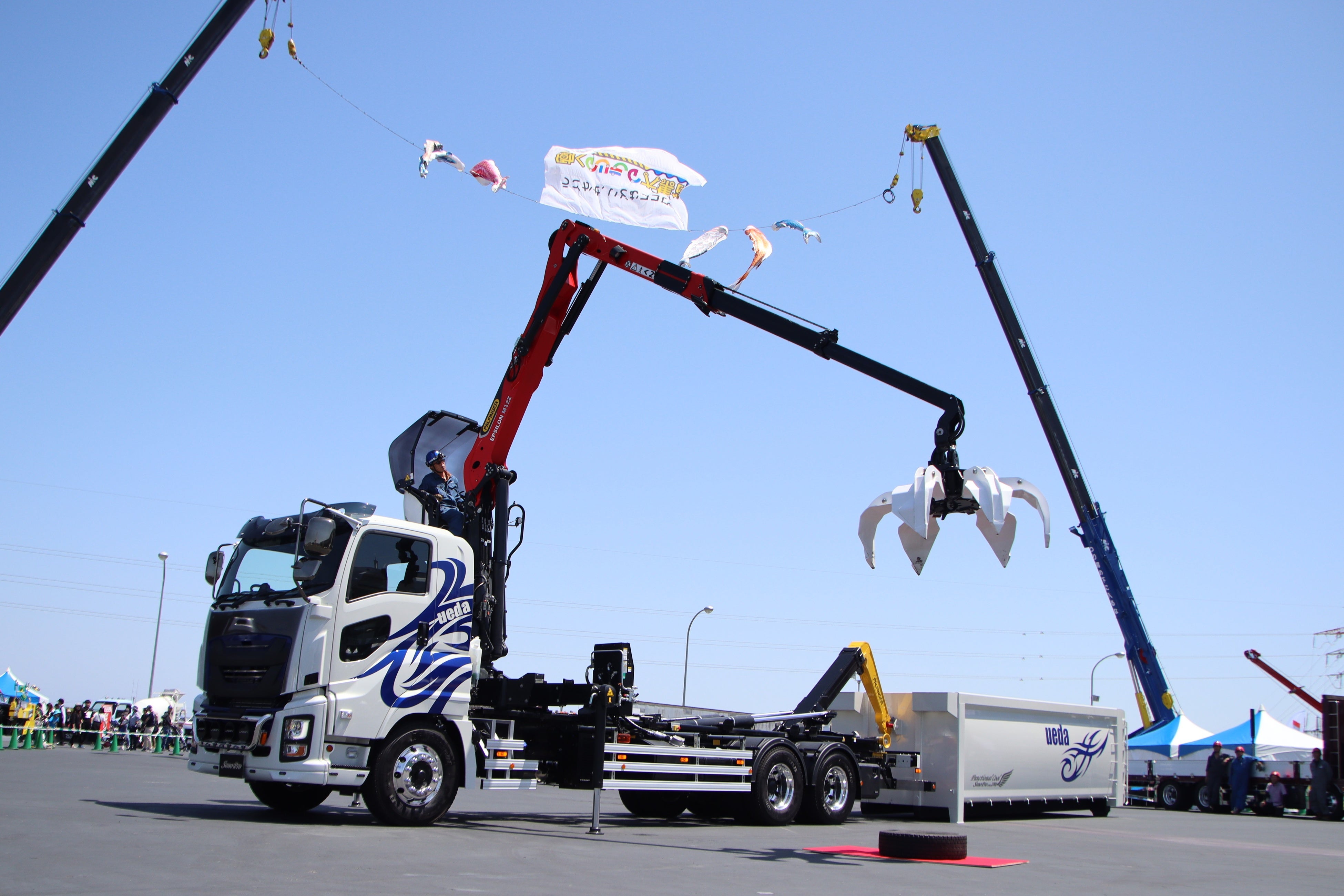 工事現場で活躍する油圧ショベルや運搬の仕事を担う特殊アーム付きトラックが、実際に動く姿をご覧いただける実演パフォーマンスを実施します。