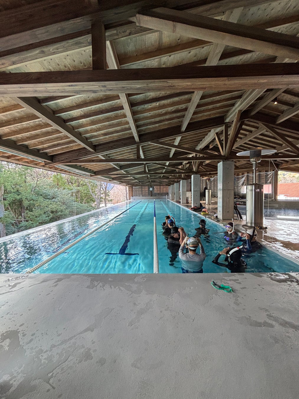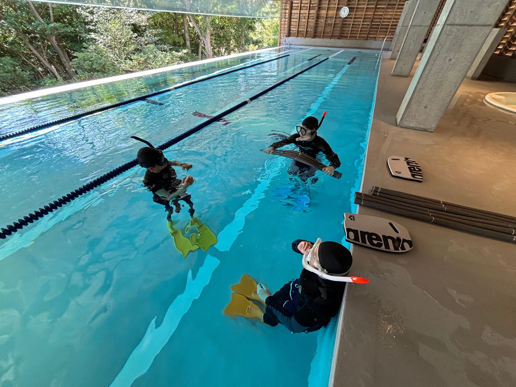 伊豆高原駅から車で9分の美しい森林に囲まれたロケーションのもと、マスクやスノーケル、フィンを装着してのご利用が可能なスイミングプールと全国的にも珍しい深さ8mのダイビングプールを有するウォータースポーツの拠点として、海や自然とつながるさまざまな体験を創出します