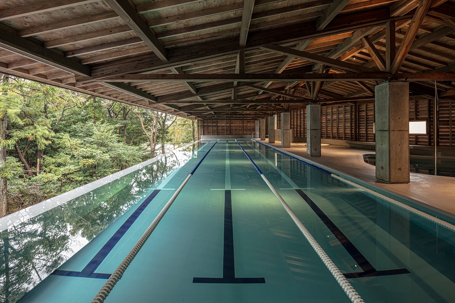 会場となる「水の家」は、伊豆高原の静謐な森の中に位置する、洗練された建築が特徴の施設です。開放感あふれるプールでの講習は、お子様にとって忘れられない春休みの思い出となるはずです。講習後は、優待価格で施設内の温泉スパを利用でき、親子でリフレッシュして帰路につくことができます。