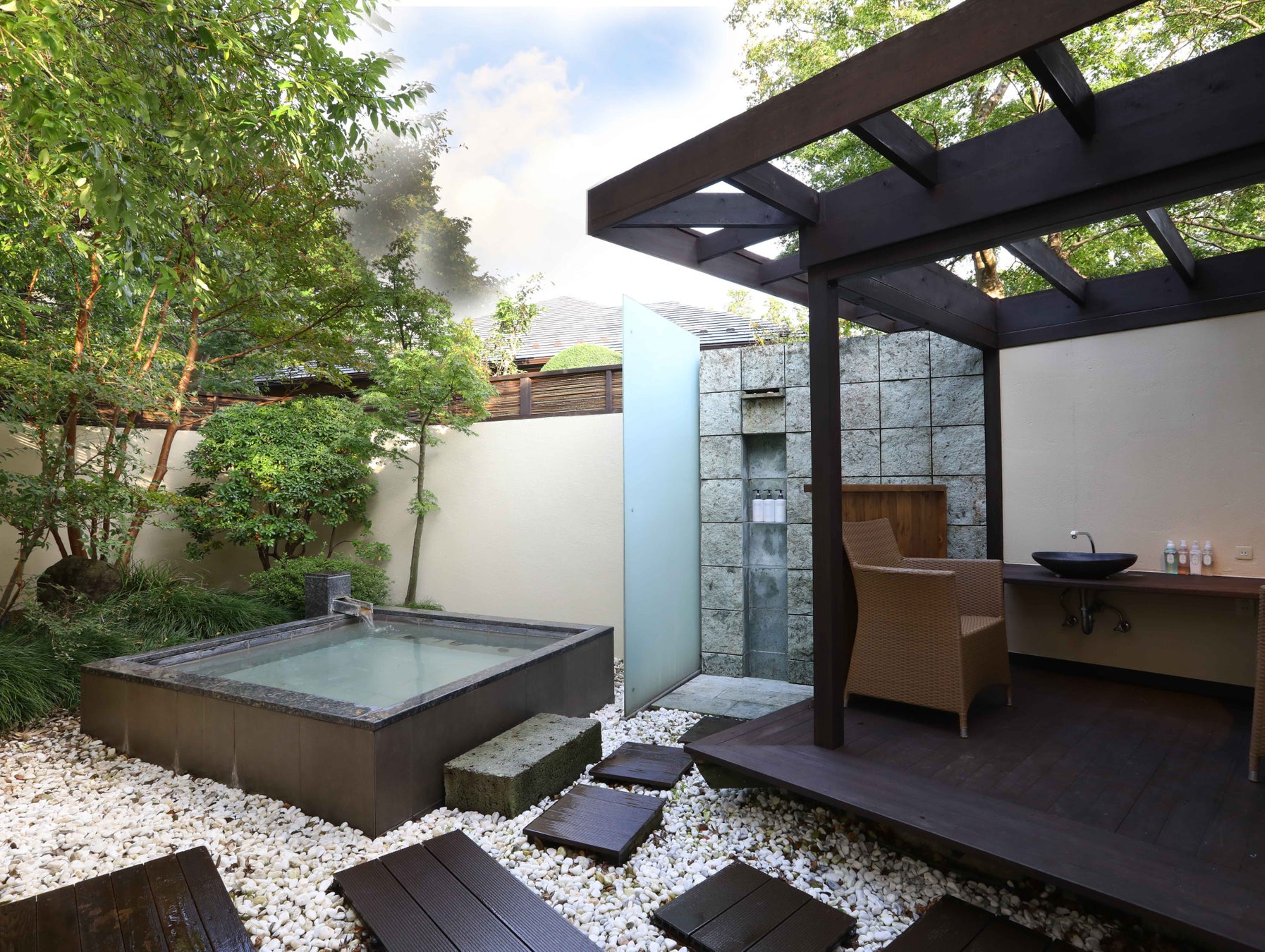 客室には専用の温泉露天風呂、