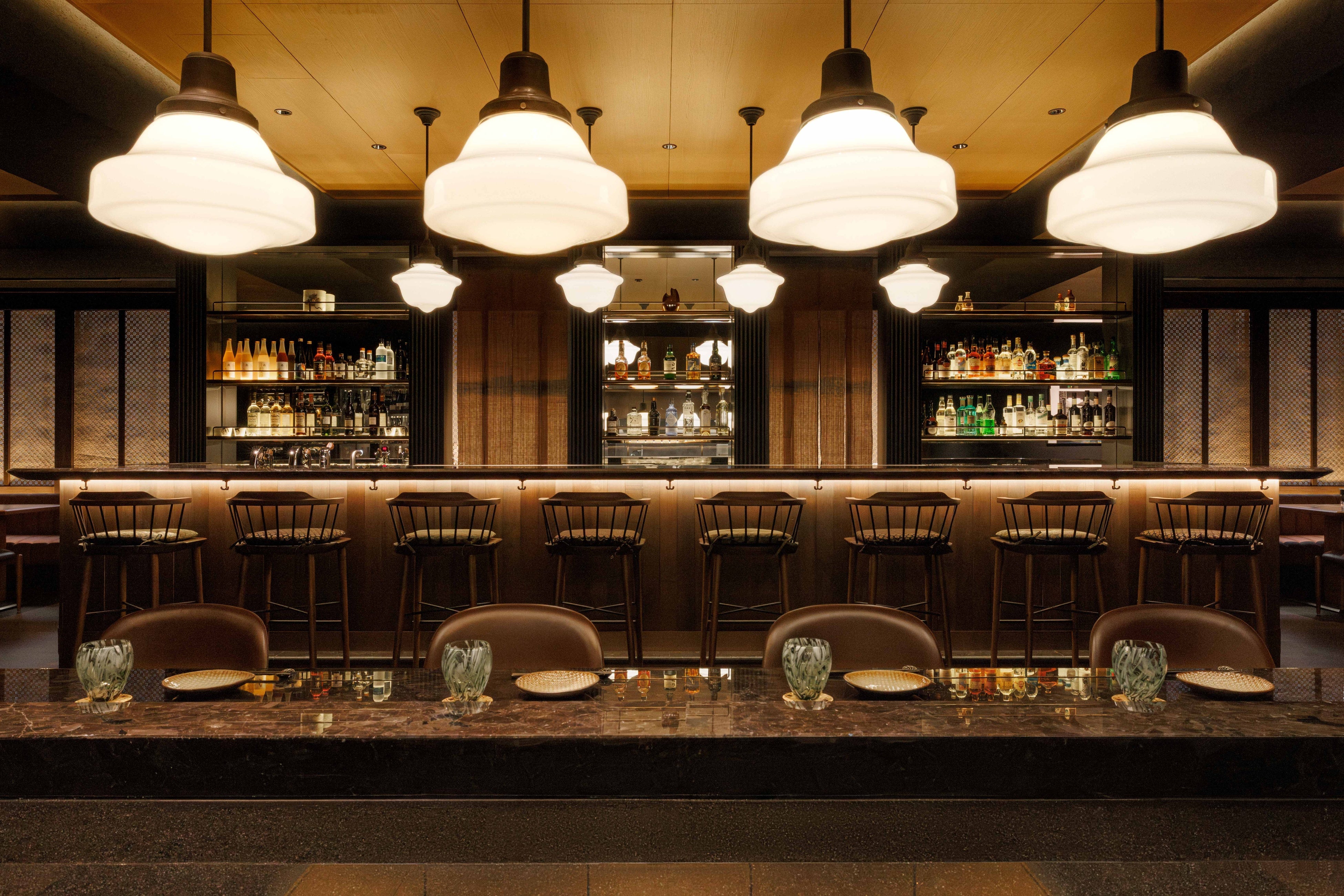 日没から夜へと移ろうひとときをテーマにした「宵」は、バーを主軸としたナイトダイニングです。地域の方々にも心地よくご利用いただける夜の新たな拠点として、周辺エリアでは希少なナイトタイムまでゆったりとお過ごしいただける空間で、本格的な和の味わいをお楽しみいただけます。元新道小学校の理科室等でかつて使用されていたペンダント照明や、音楽室の床材が巧みに再生された空間は、多くの人々が集い、交流を育んだ場所の歴史を継承し、そのレガシーを現代に再解釈しています。京都の社交文化を象徴する角屋に着想を得た、食・酒・会話が自然に交わる場を提供します。