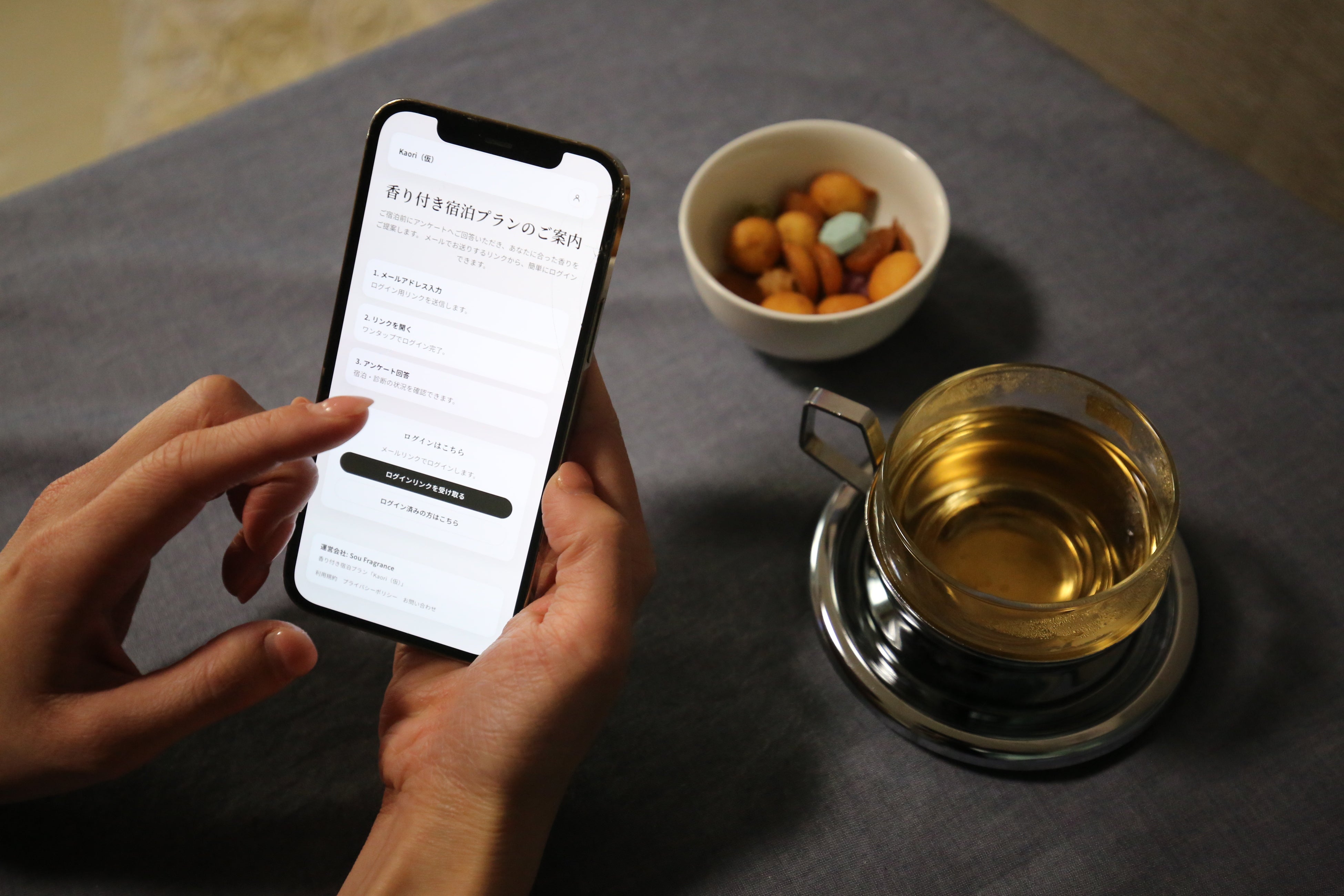 宿泊前にオンラインで質問に回答することで滞在イメージに合わせた香りを提案。