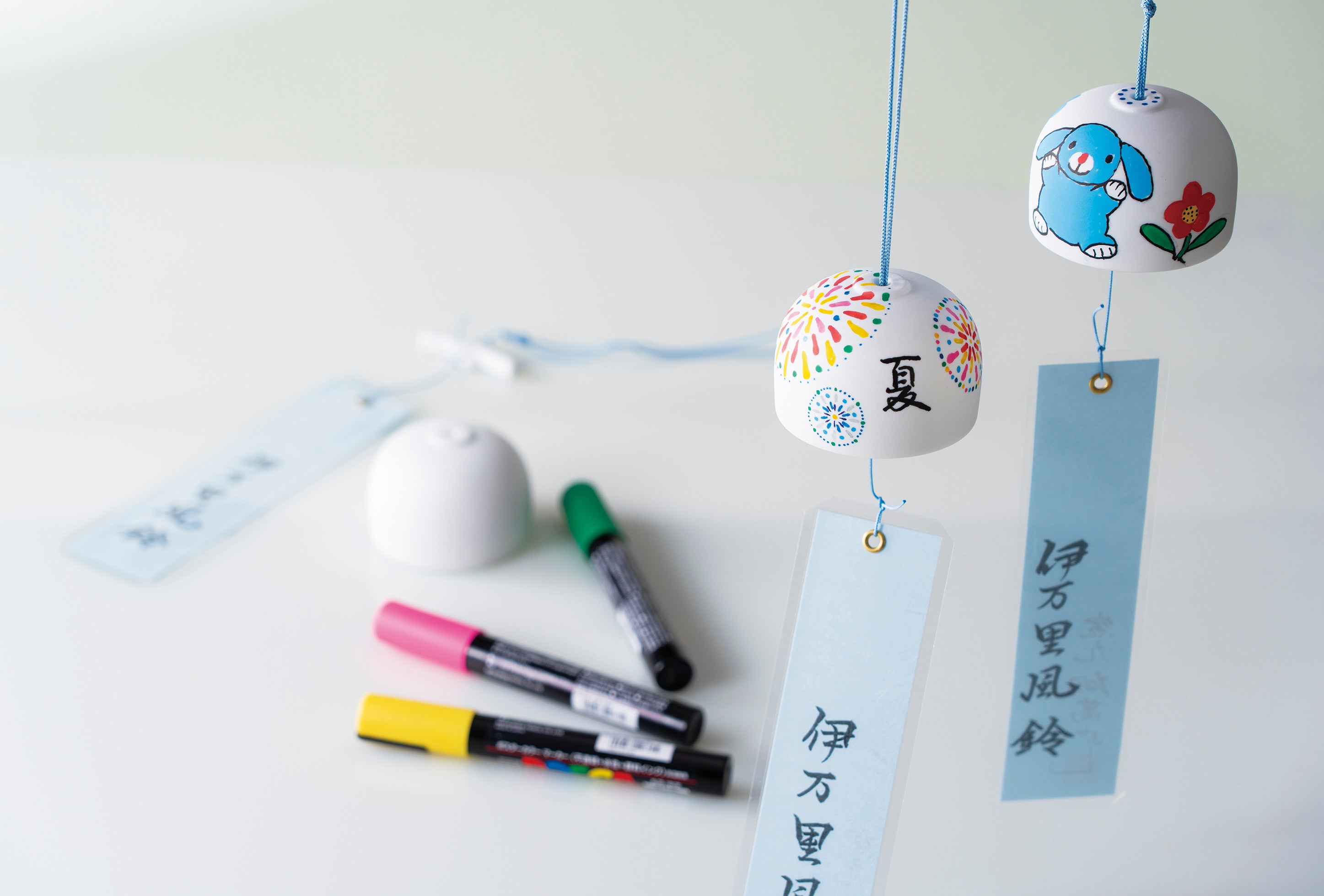 内容:焼成された磁器の伊万里焼風鈴にお好きな色の油性ペンでお好きな模様を描いていただきます。