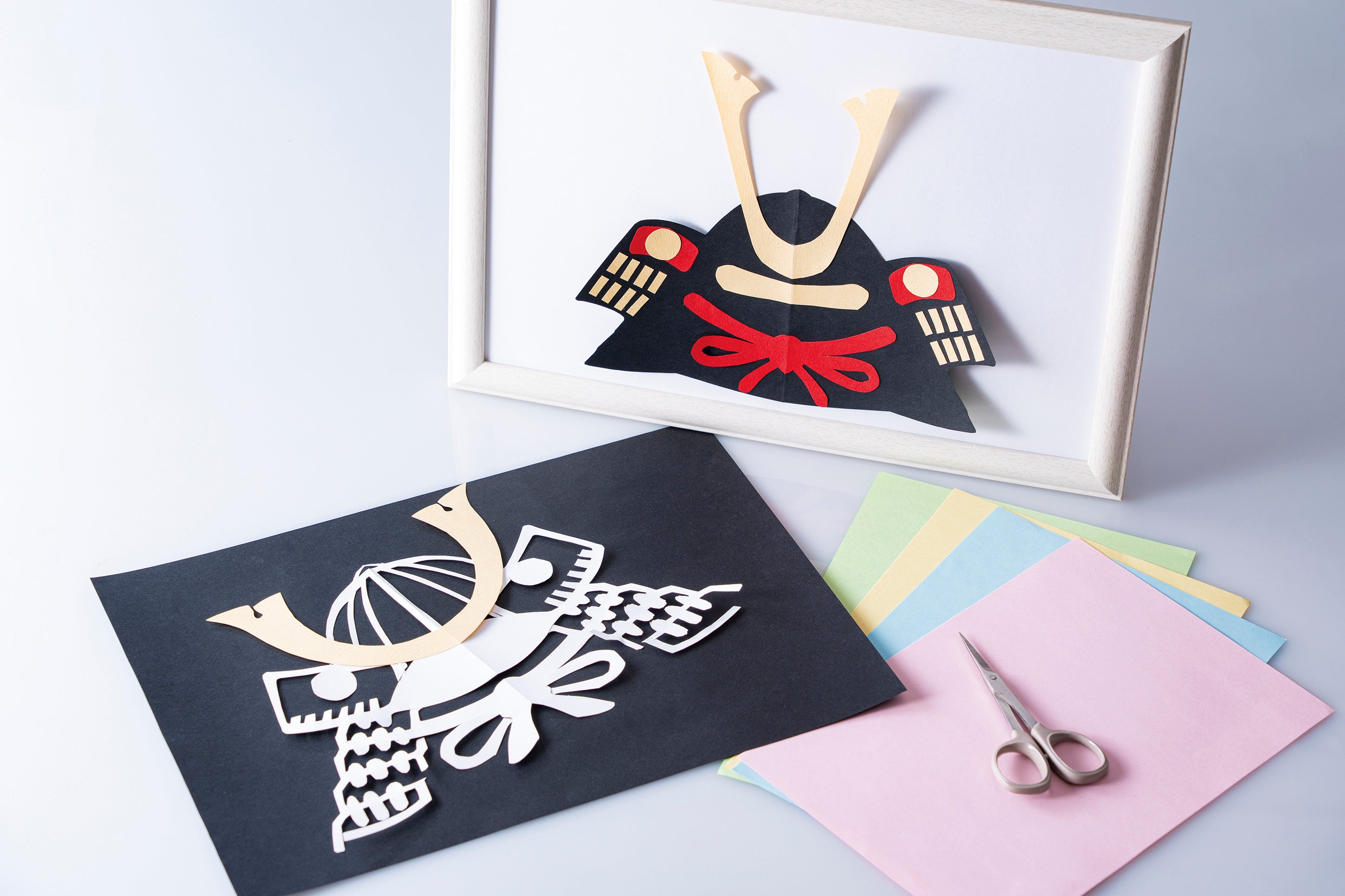 内容:伝統芸の一つでもある紙切りの手法で兜を作ります。出来上がった作品は額に入れてお持ち帰りいただけます。