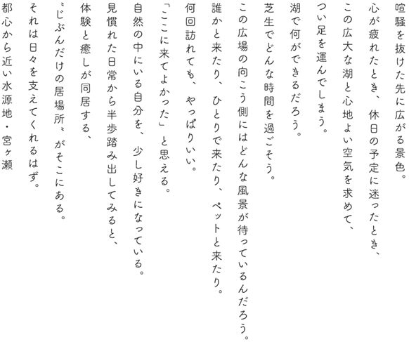 【ボディコピー(詳細な文章で宮ヶ瀬のイメージを心に描き出すもの)】