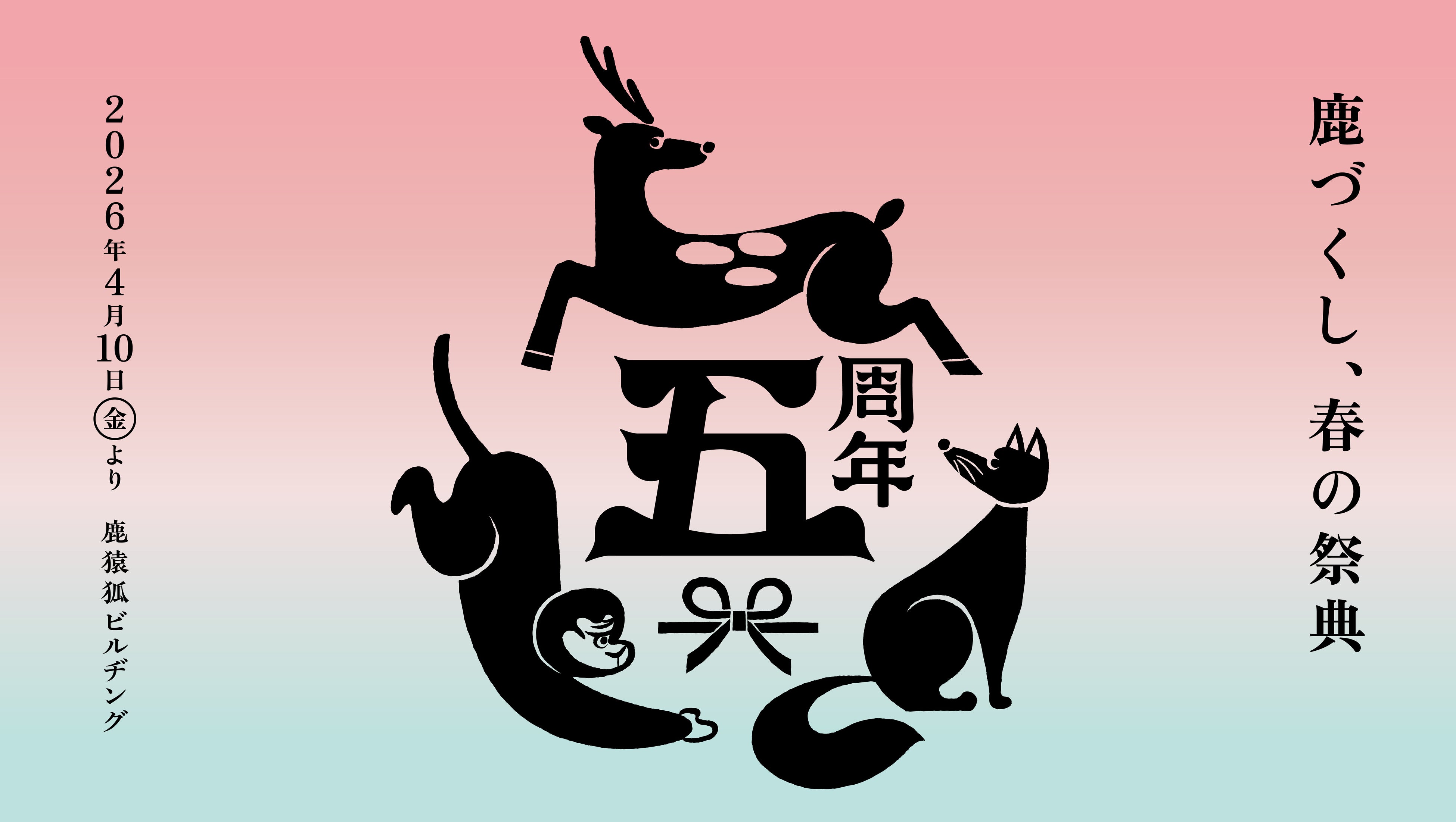 株式会社中川政七商店が運営する複合商業施設「鹿猿狐ビルヂング」(奈良県奈良市)は、2021年の開業から5周年を迎えます。奈良の新たなランドマークとしてお客様と歩んできた5周年への感謝の気持ちを込め、2026年4月から12月まで1年を通したアニバーサリーイベントを開催いたします。 第1弾4月10日(金)〜5月31日(日)のテーマは「鹿づくし、春の祭典」。約100頭の鹿が集う催し「鹿寄せ」や「鹿と歩む奈良ガイドツアー」の開催、「世界にひとつの鹿マグネット」をつくるワークショップ、そして「鹿ティラミス」や「鹿もなか」など鹿をモチーフにしたスイーツメニューまで、春の奈良でシカできない全7つの体験をお届けします。
