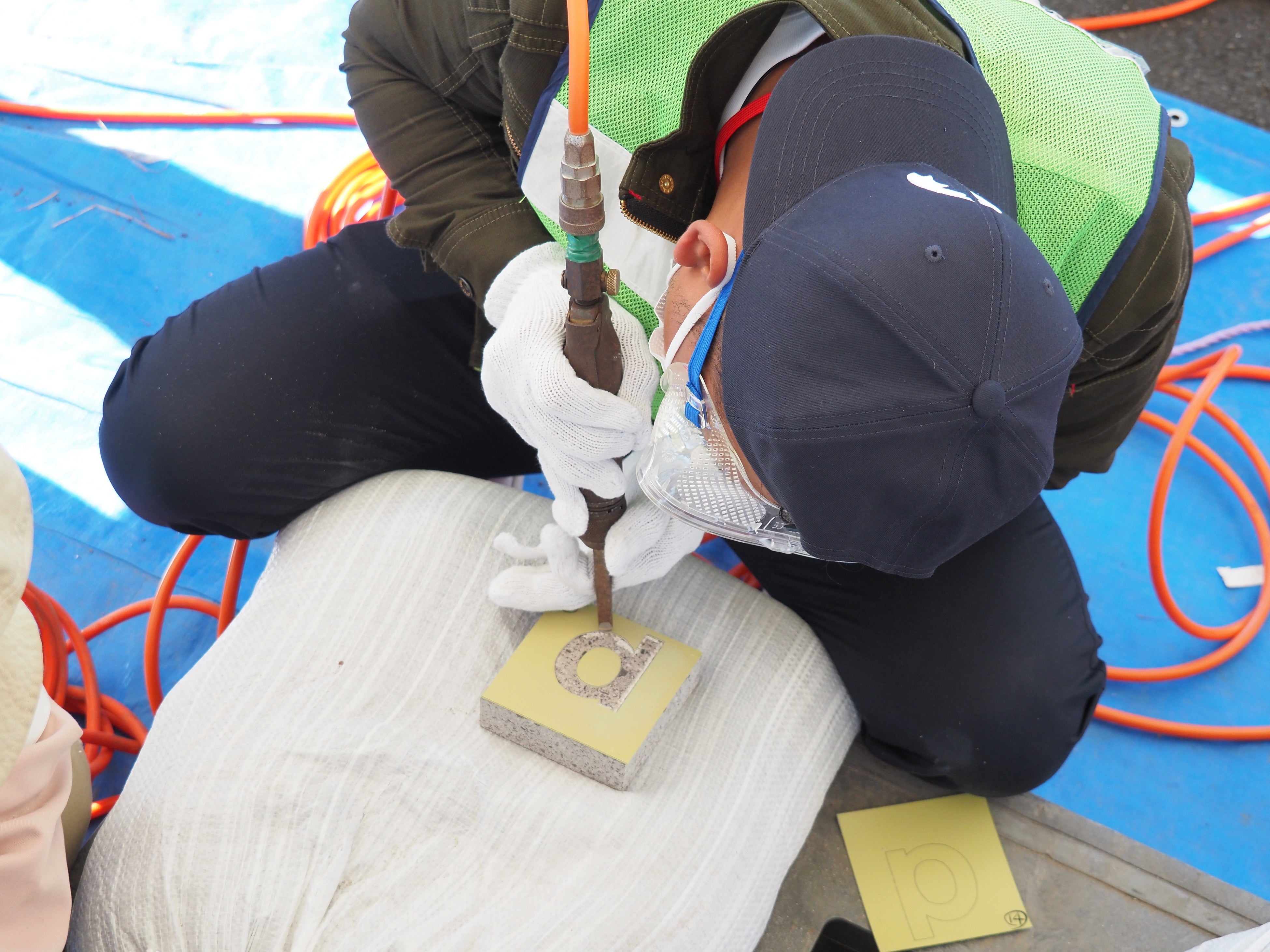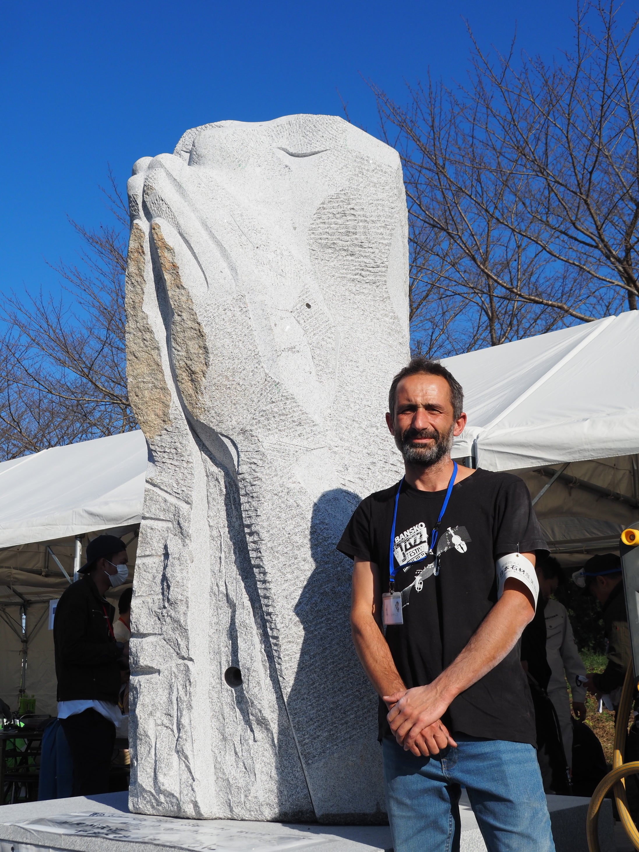 滞在期間中には石材加工講習会を開催し、イヴァン・ストヤノフ氏は講師を務めました。講習会では世界平和への願いを込めた英文メッセージ「We sincerely hope that the World will be at peace forever.(世界が永遠に平和でありますように)」の文字を参加者自らが石板に刻み、石像の台座にはめ込んで、作品は完成しました。本作品は国境を越えた石文化と技術交流の象徴となっています。