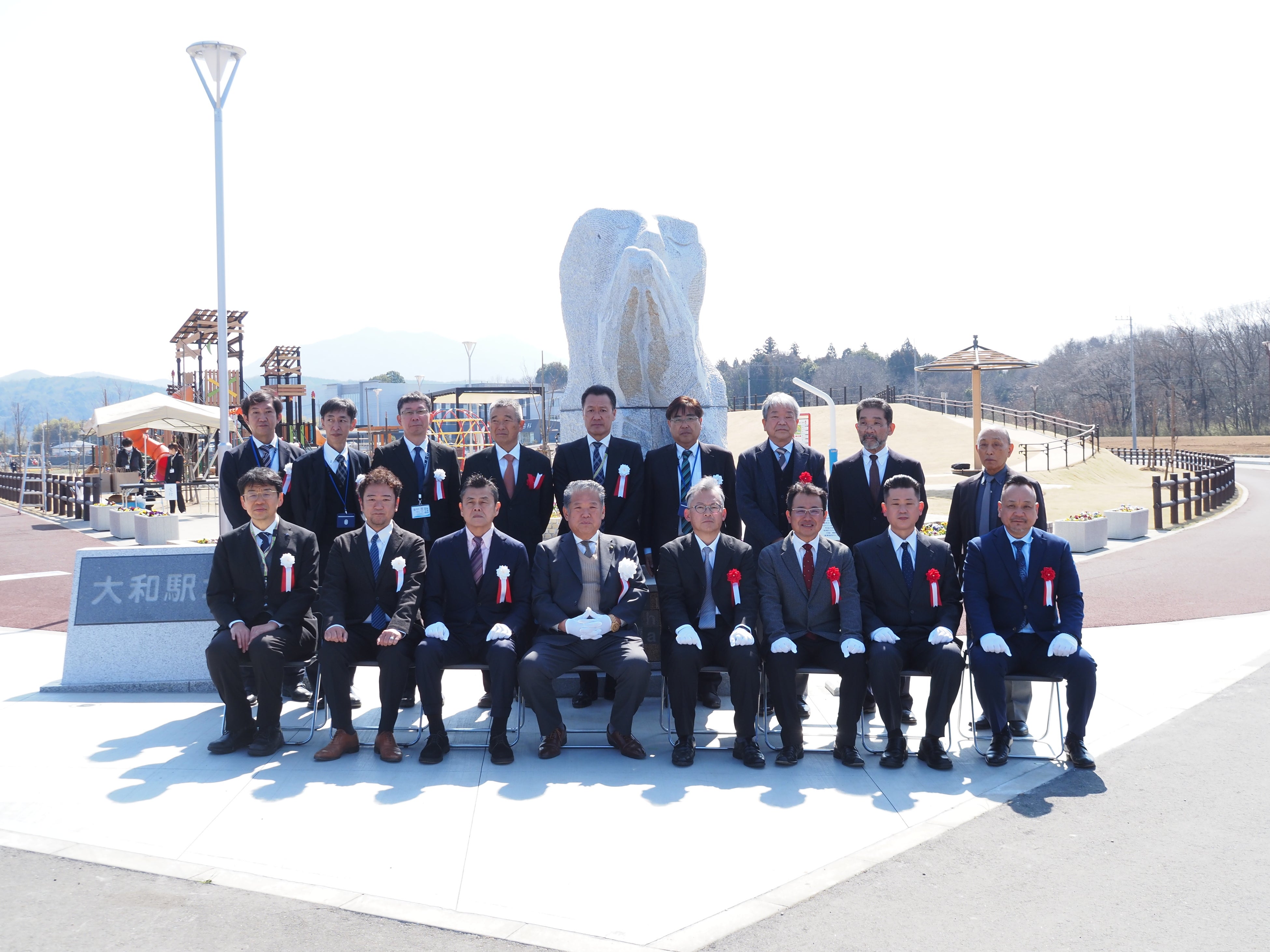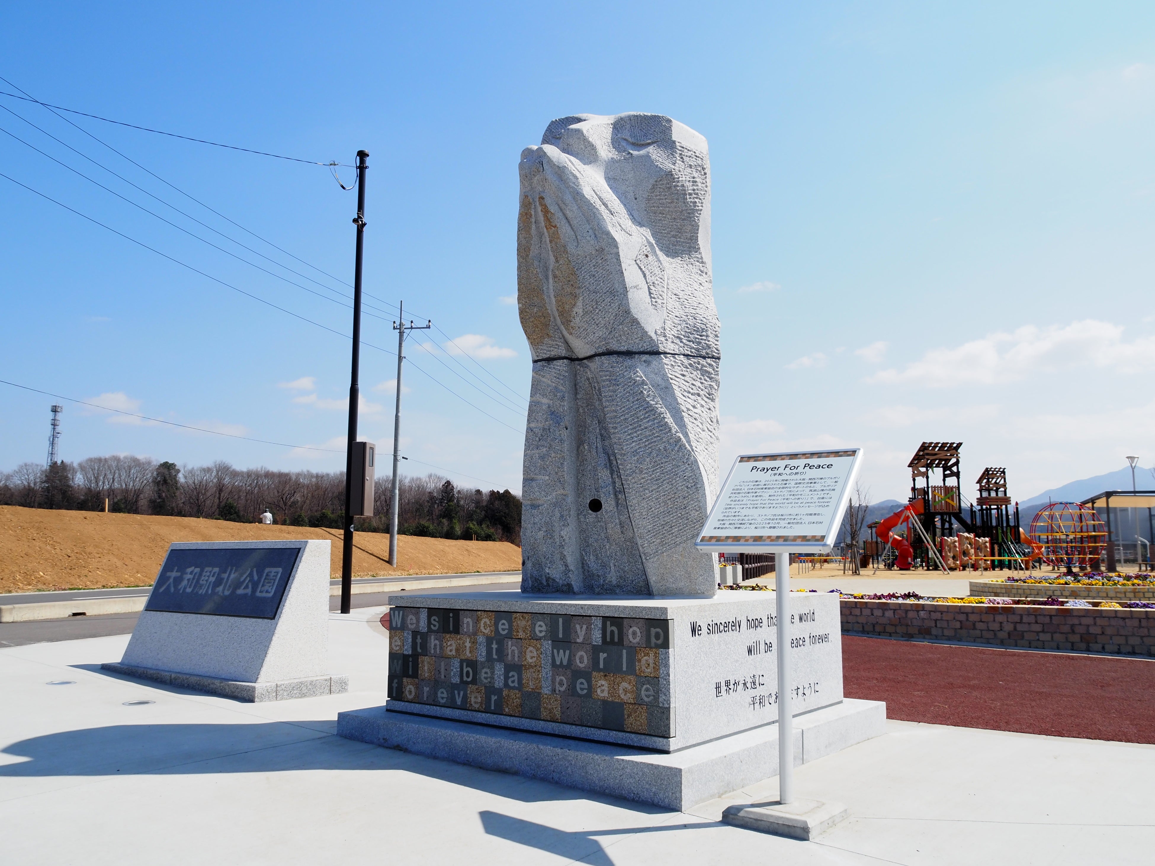一般社団法人日本石材産業協会(東京都千代田区 会長 森田浩介)は、2024年10月にブルガリアより石彫作家イヴァン・ストヤノフ氏を日本に招聘して制作した「平和のモニュメント」(高さ:2m80cm/総重量:6.8t)を、このたび茨城県桜川市に寄贈しました。2026年3月17日(火)には、モニュメントの設置場所である茨城県桜川市・大和駅北公園にて除幕式も開催されました。