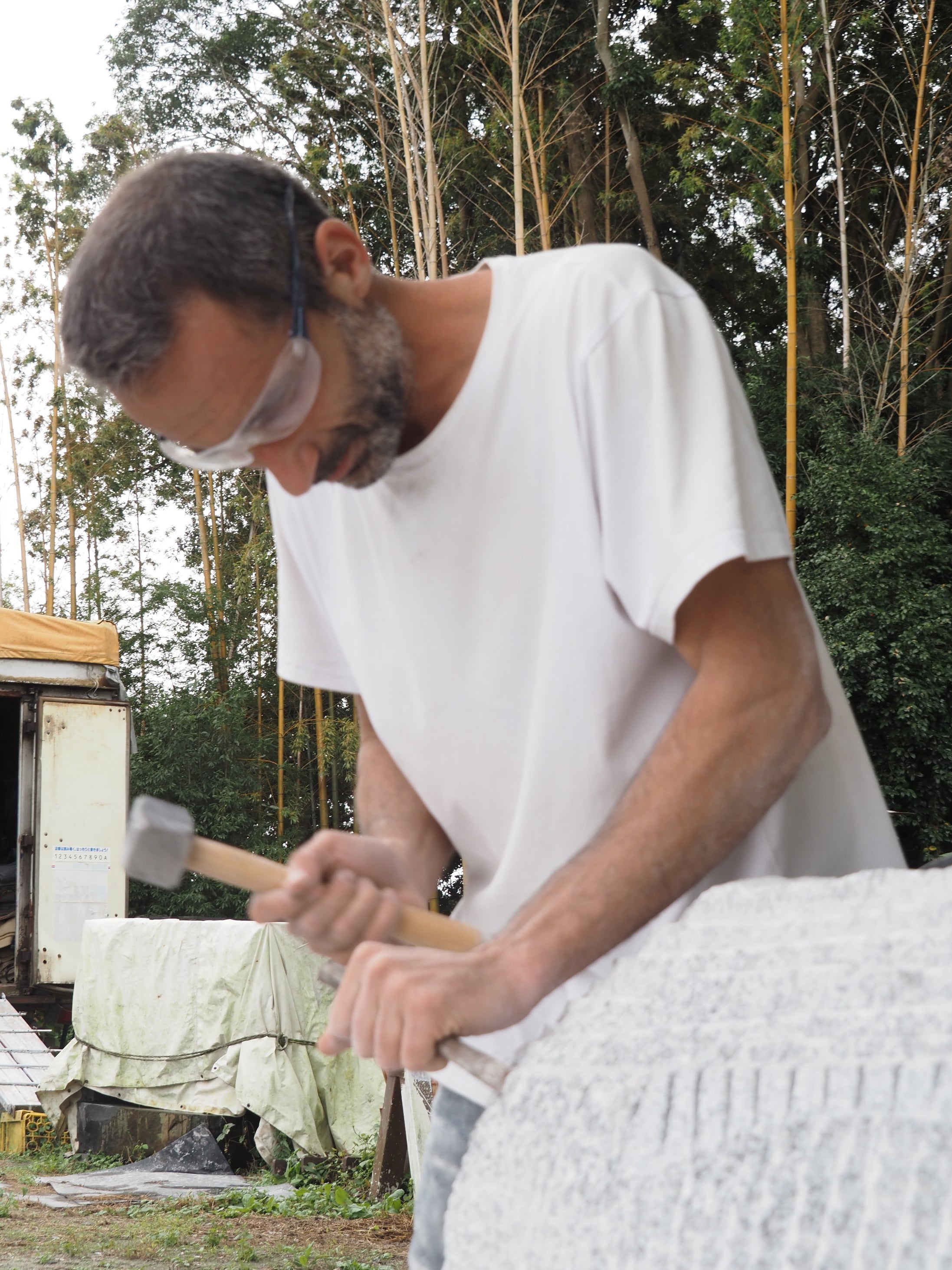 「世界的石彫作家を招聘、1か月にわたる制作」