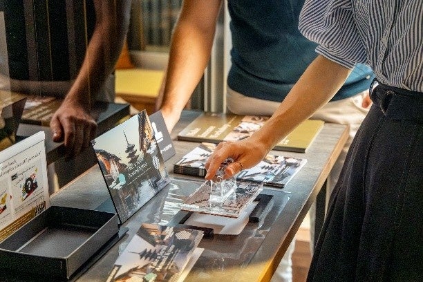旅をつなぐ体験コンテンツとして、「東急ステイ京都三条烏丸」「HANARE by Tokyu Stay」「東急ステイ京都阪井座」「nol kyoto sanjo」の 4ホテルを巡るスタンプラリーを実施しています。各ホテルに設置されたスタンプを専用台紙に重ねて押していくと、奥行きのある美しい京都の風景が一枚の絵のように完成します。まるで旅の思い出を一枚の絵画に閉じ込めるような、特別な体験です。