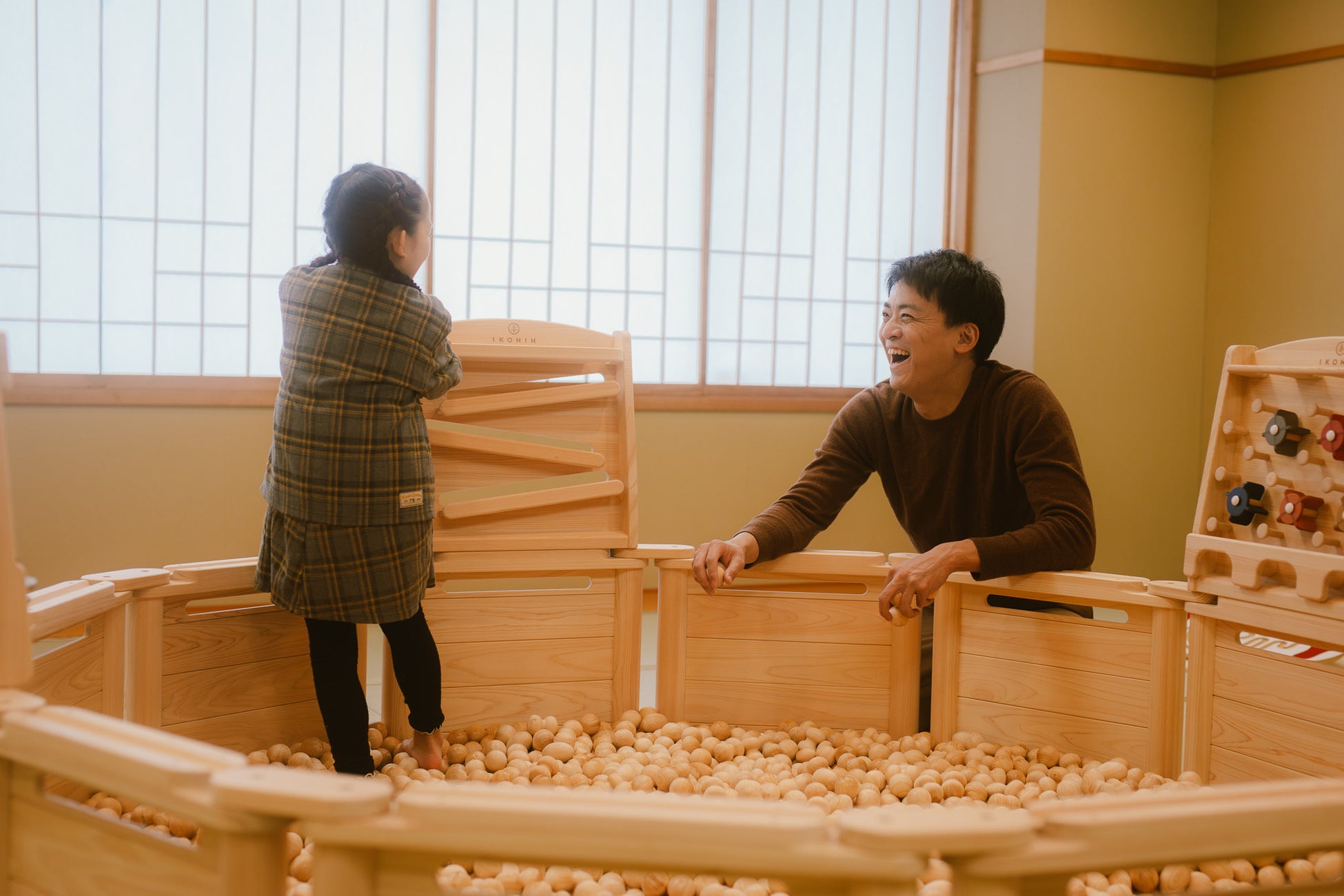 ヒノキのボールがたっぷりと入った木製ボールプールや、木製のバランスボードを設置した「アクティビティルーム」では、元気に身体を動かしたいお子さまにお薦めです。