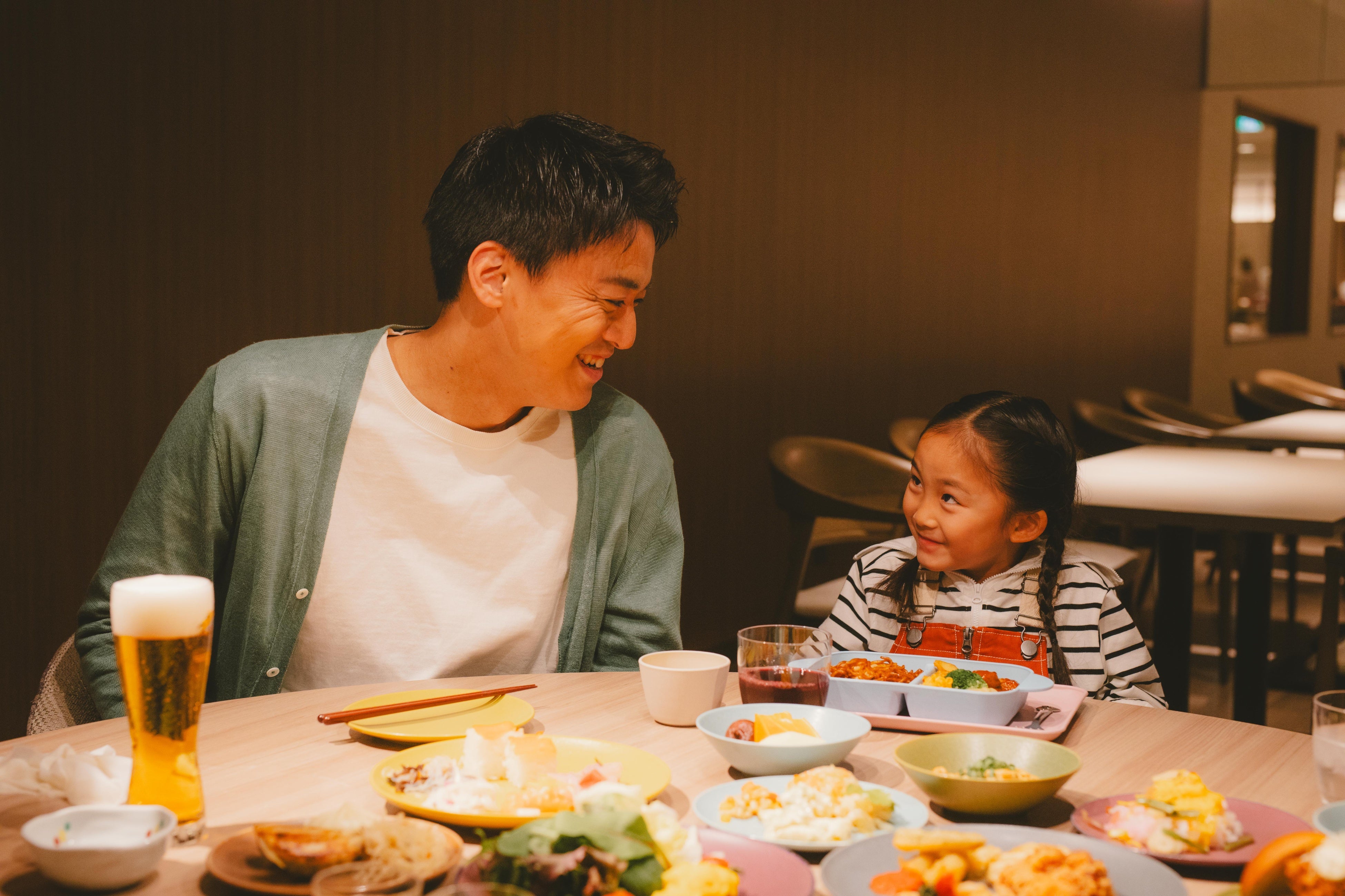 朝夕のビュッフェスタイルの食事、アルコールやソフトドリンクが楽しめるラウンジ、温泉露天風呂やサウナを備えた大浴場など、お子さまの「楽しい」だけでなく、大人も日常を離れ心ほどけるひとときが過ごせるサービスでお客さまをお迎えします。