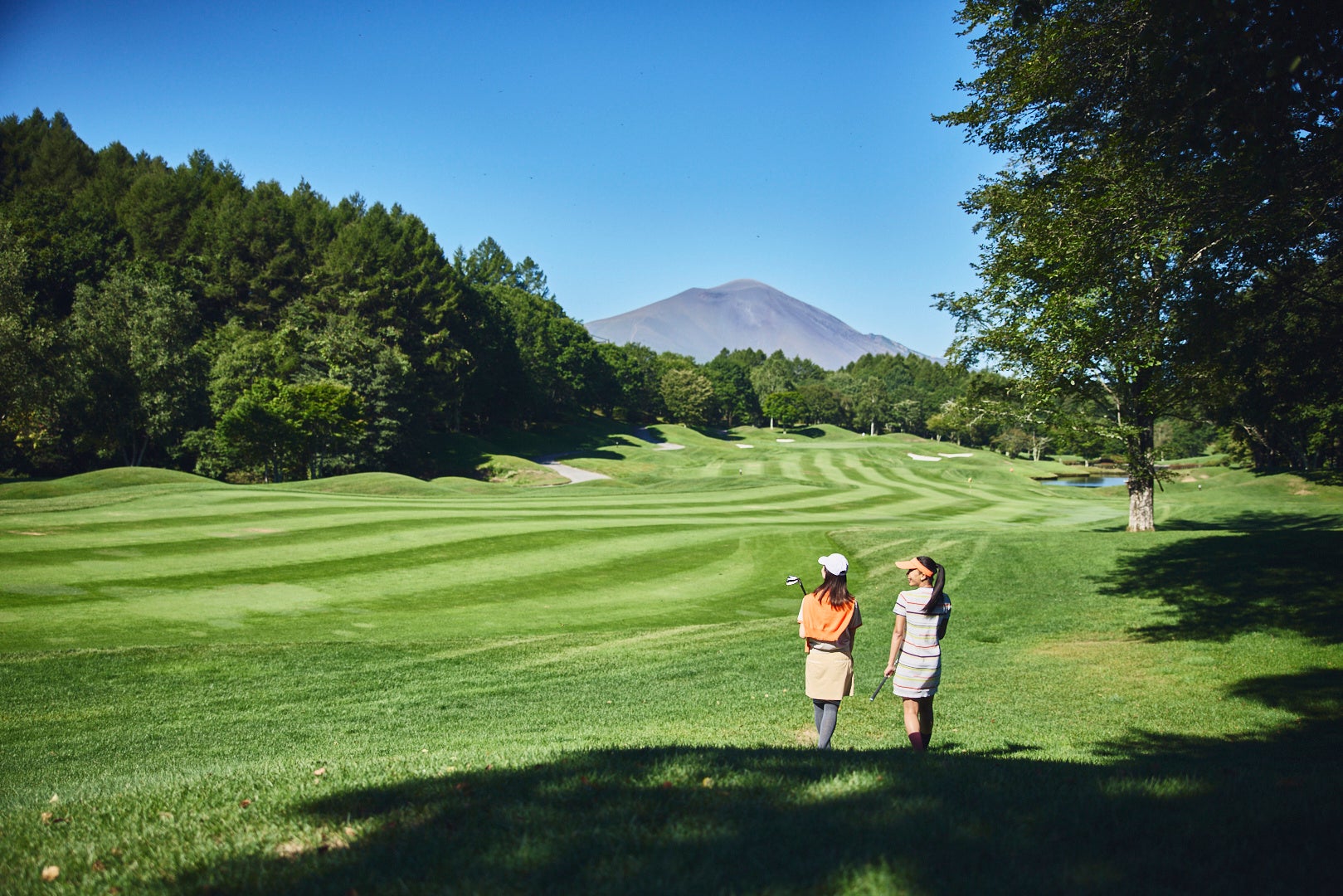 ゴルフ場から望む浅間山は、どのホールからもその雄大な姿を感じられ、緑の芝と白砂のバンカーが織りなすコントラストは、まるで絵画のような美しさを誇ります。鳥のさえずり、蝶の舞う静かな林間コースで、自然と一体になる心ほどけるひとときをお楽しみください。