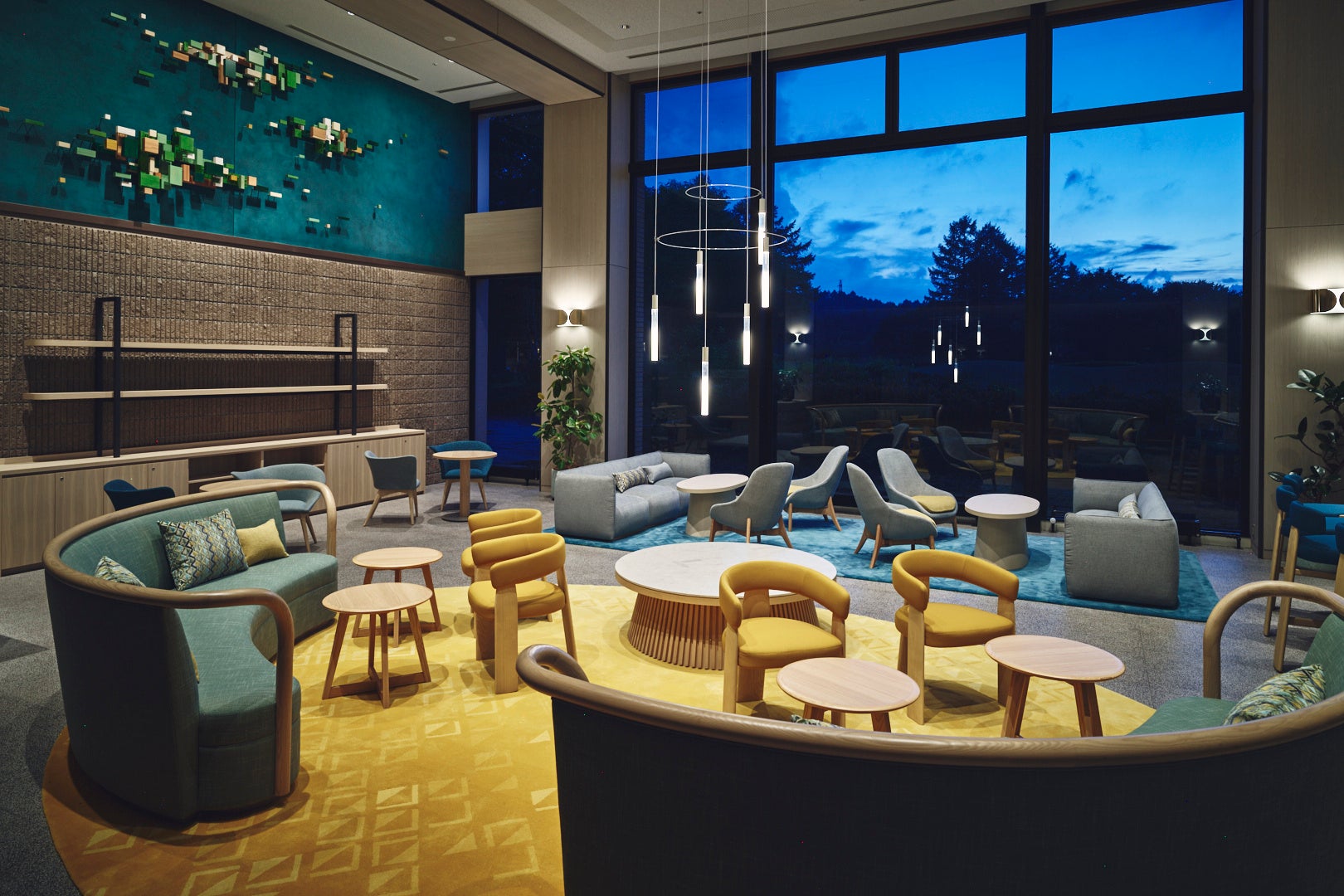 大きな窓から森の緑が広がる、自然に包まれた広々とした”フォッジ フォレスト ダイニング”。