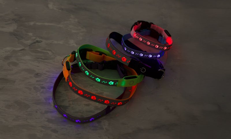 自ら光るLEDと、車のライトなどを反射する素材のダブル効果で、遠くからでもワンちゃんの存在をしっかりアピールします。