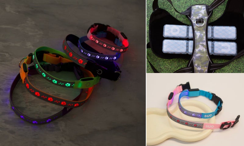 SUOの「光るお散歩シリーズ」は、LED発光と反射素材を組み合わせることで、夜間や暗い場所での視認性を飛躍的に高めたドッグアイテムです。