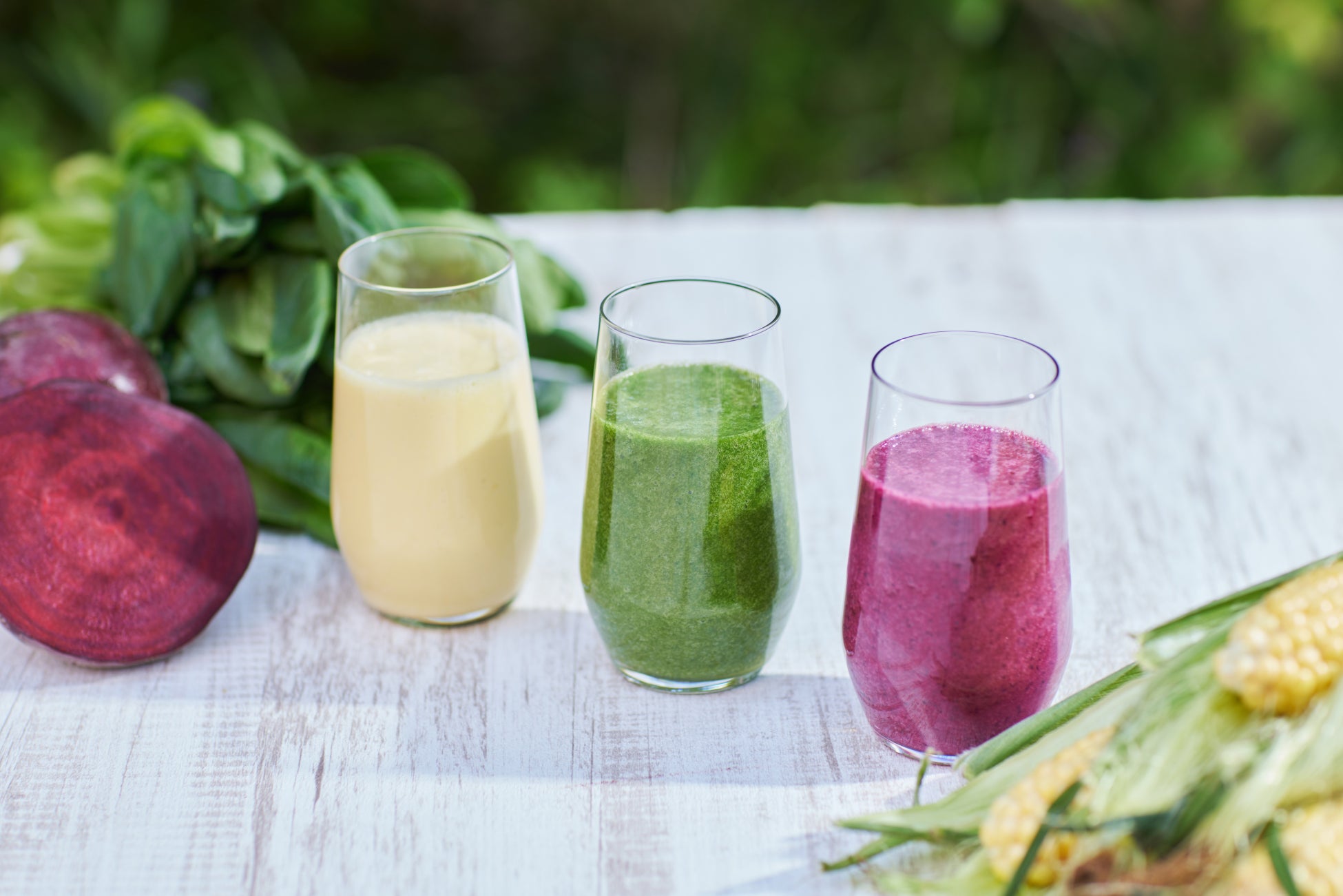 「トマトのかき氷」のソースは、規格外品のトマトを煮詰め、ココナッツソースを合わせました。濃厚なトマトの甘味の中に微かな酸味を感じられる、爽やかな味わいです。規格外品を使用した「丸ごと野菜のスムージー」はとうもろこし、小松菜、ビーツの3種類です。例えば、ビーツには、りんごやブルーベリーなどの酸味を加え、野菜の旨味を最大限に引き出しました。3種類それぞれの野菜の旨味を存分に味わえる濃厚なスムージーです。