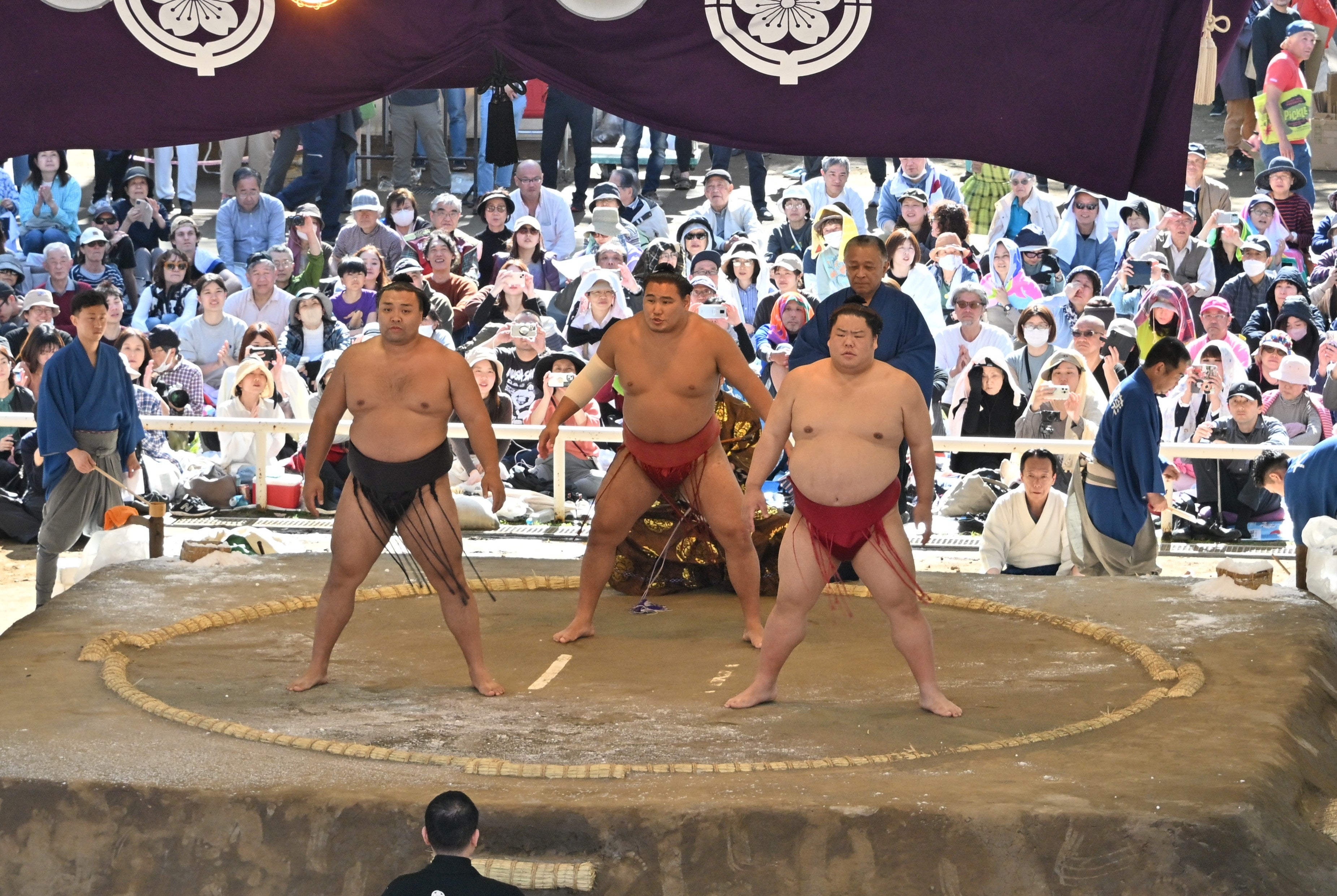 境内相撲場で行われる「奉納大相撲」には、日本相撲協会所属の力士が来場します。